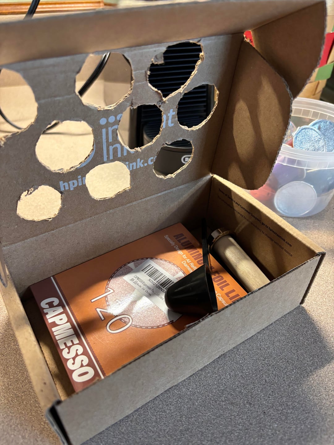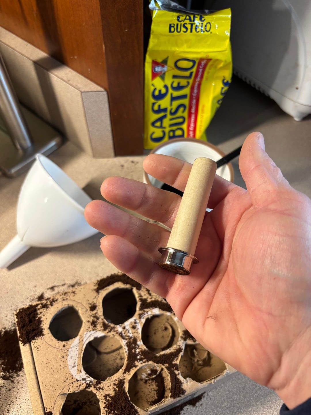 Hi there! I recently purchased a Nespresso Essenza Mini and wanted to see if I could refill the pods reliably and easily. I’m using the Capmesso brand of lid replacements and a few other homemade gadgets (if you can call them that) to do the refills. It all works well enough for me. Plus I got to use some of my woodworking skills to make a little tamper using a piece of poplar and a cap pull for a drawer. Check it out and let me know what you think. I’m happy to answer any questions you might have when I get a chance.