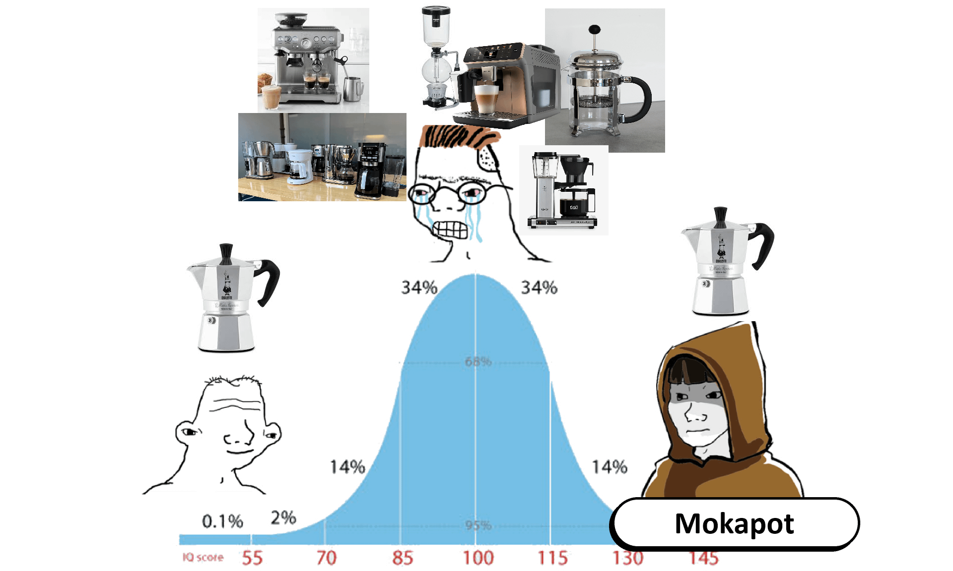 moka is shit. in my expirience people start with moka or french, then fency espresso machines, and v60 at the end.