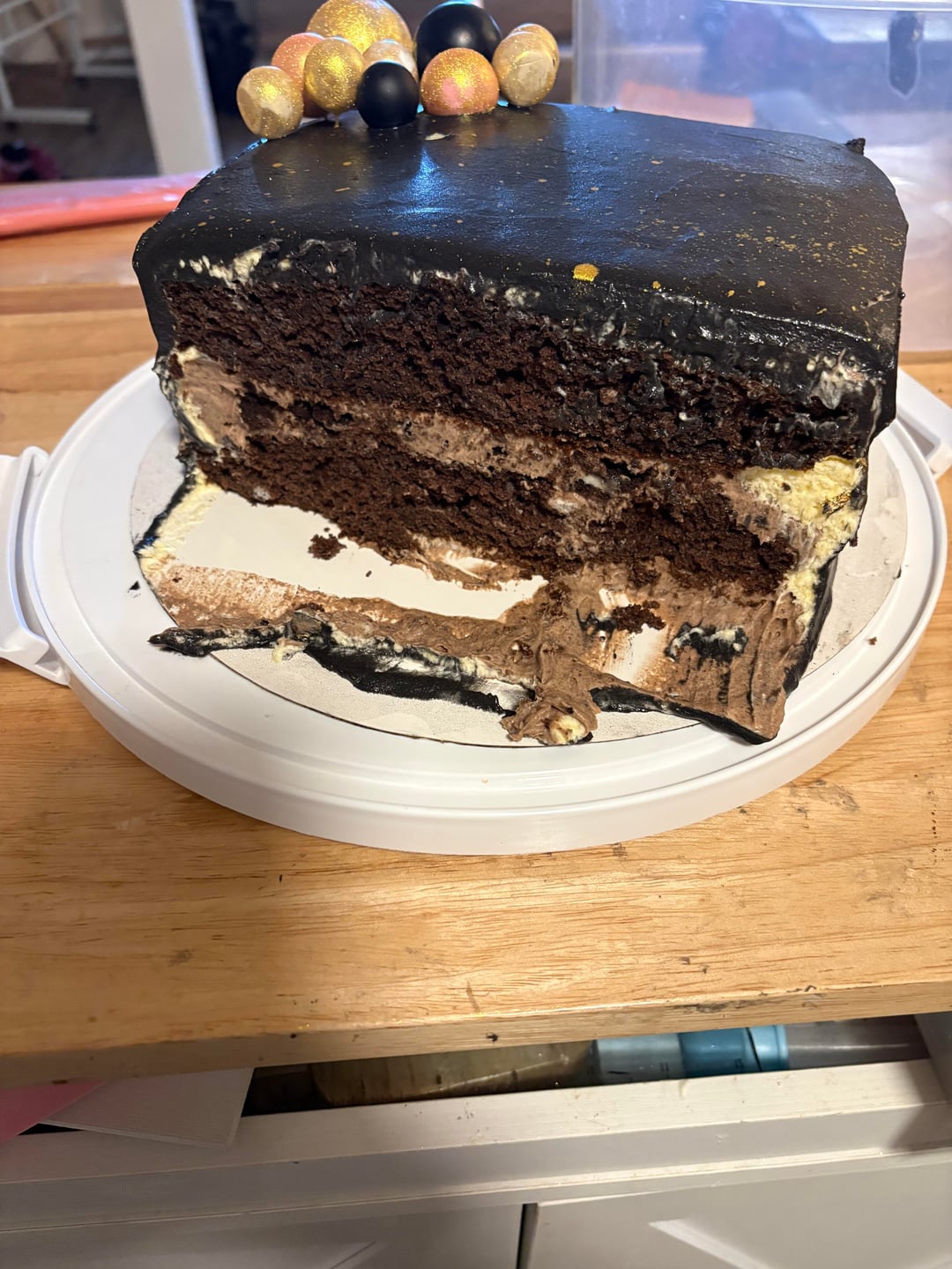 Now almost 100 pounds lighter, sleep amazing, don’t have to take anxiety meds anymore, back in college (I’m 43). having all positive relationships and never wondering what I did or said while drunk- life is amazing. Making black frosting was a bitch and I have never really decorated a square cake so it’s not perfect but it tastes like the best cake I ever had.