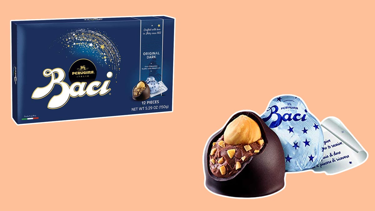 Baci (Italian for kisses) are a popular Italian treat and holiday item, available at Trader Joe’s or on Amazon. Made by the famous chocolate makers at Perugina, a Baci box is a great gift to bring to a holiday dinner or open a box up and use the individually foil-wrapped confections as stocking stuffers.