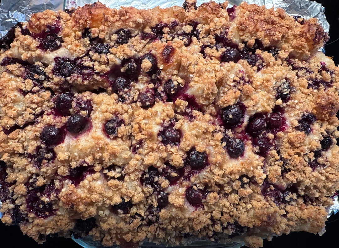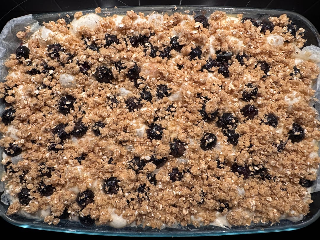 With this, I don’t know if I can even consider this focaccia anymore hahaha. However, I just folded in blueberries coated with lemon and cinnamon sugar, then topped with a crumble and more blueberries.