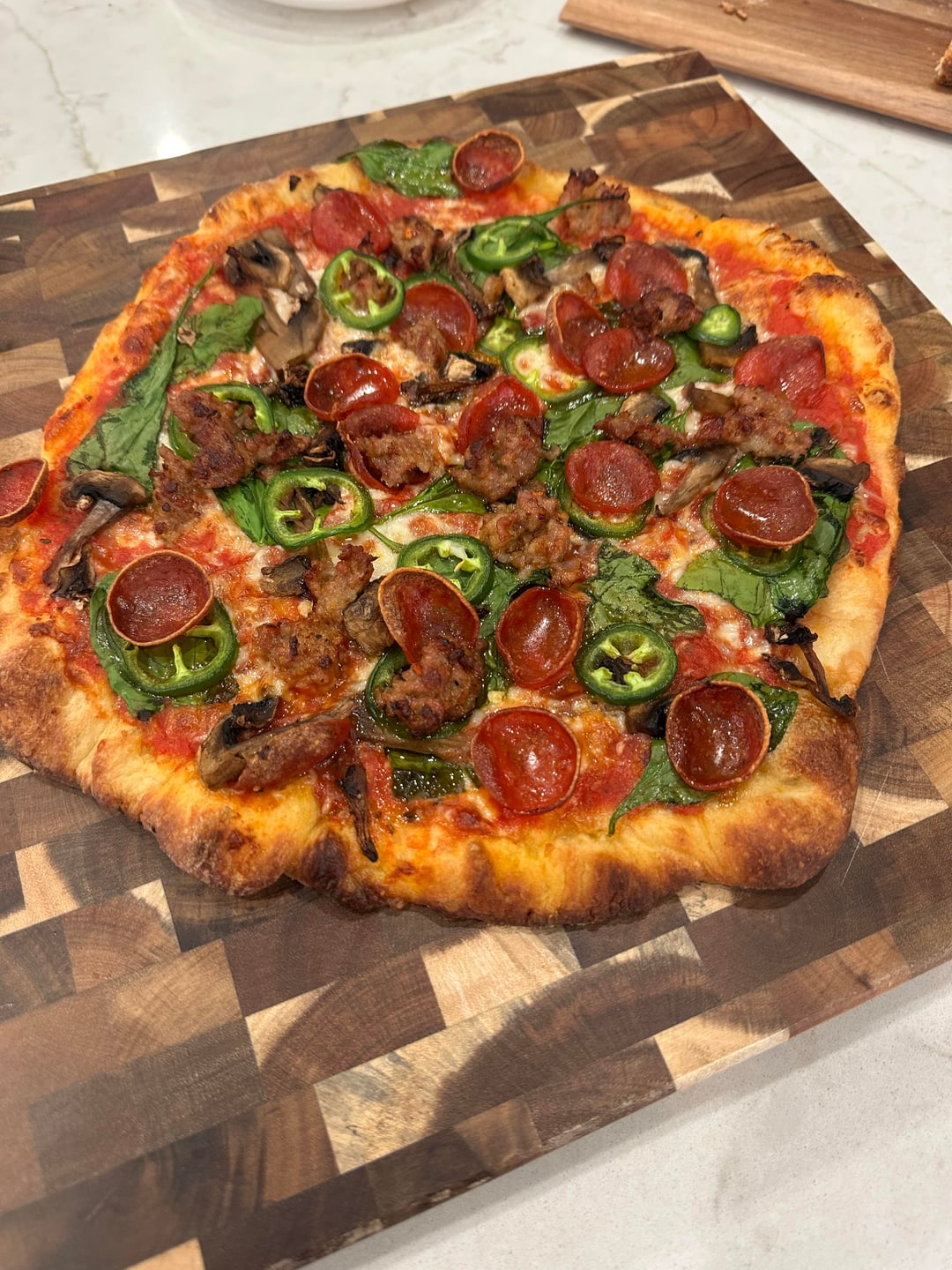 Was delicious! by NoOrange2343 15 Comments No_Fill_6005 3 months ago Looks awesome to me! Mobile_Aioli_6252 3 months ago Looks good to me 😄 shaved-yeti 3 months ago Congrats! Looks tasty quaser72 3 months ago Looks good shortdude72 3 months ago It looks good. Taste is the most important thing and it sounds like you had that. myke5k 3 months ago Looks great! Keep at it! Ih8Michael 3 months ago Well done! Looks awesome! left-for-dead-9980 3 months ago As long as you like it, it’s perfect. Fabulous_Show_2615 3 months ago That’s a sexy first attempt. ChubbyJedi420_86 3 months ago Looks delicious 🤤 cactuskid1 3 months ago Looks better than any pizza I seen in AZ MrTalkingmonkey 3 months ago You did well. Keep on keepin’ on. emptykeg6988 3 months ago Nice choice of toppings. I’d put this in the win category 🙂 kamadomike 3 months ago Looks awesome! My daughter and I made our first together and it ended up looking like a weird heart shaped butt. lol. seanmonaghan1968 3 months ago Great colour, would be happy