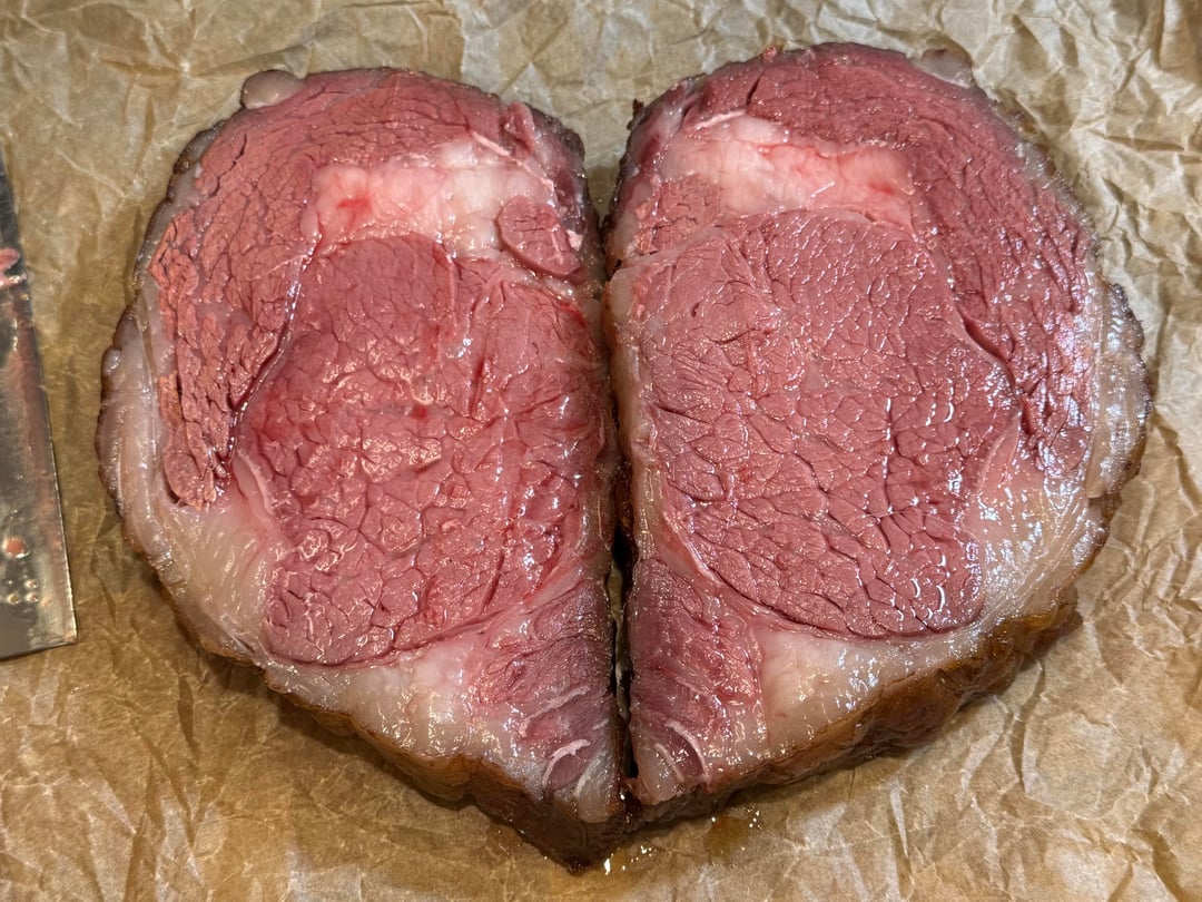 I was warned against SV’ing prime rib but thought this 1.8lb piece would be too hard to roast to get that perfect medium rare.