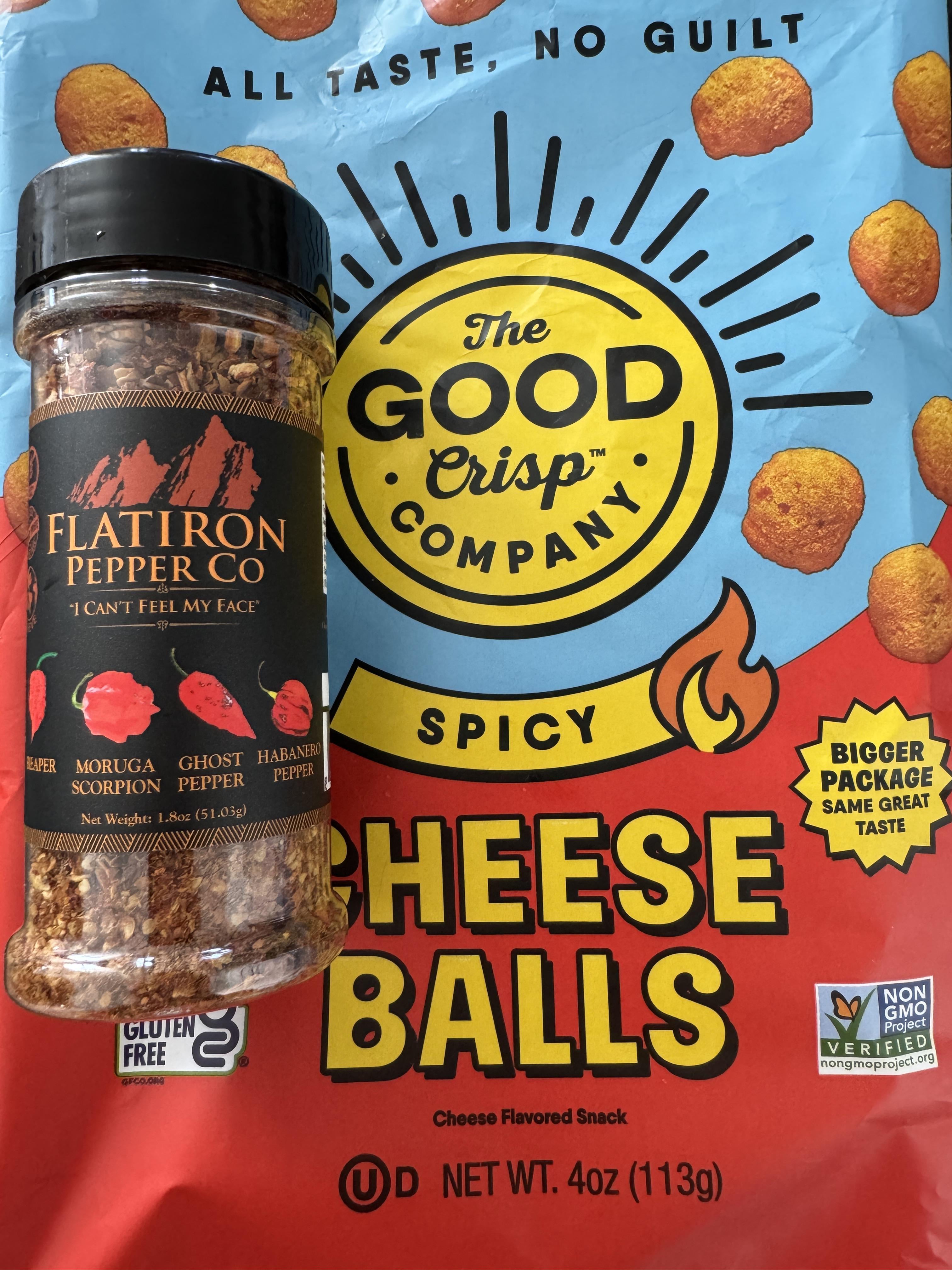 Flatiron pepper and spicy cheese balls make a good combo. Thought I’d share. Scooping the remaining “I Can’t Feel My Face” pepper from the bottom of the bag with the last cheese balls may not have been the best idea though. Stomach burned for a while after that. I regret nothing.