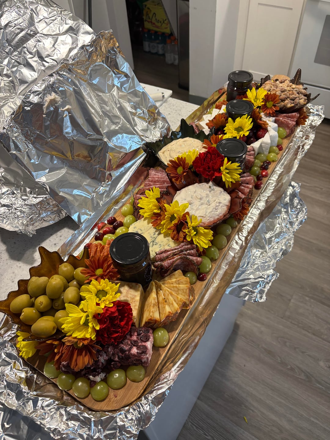 This is a fun board, with a lot of options and different cheeses. Let that shine through. Let the food be the decoration and you’ll have a more refined board.