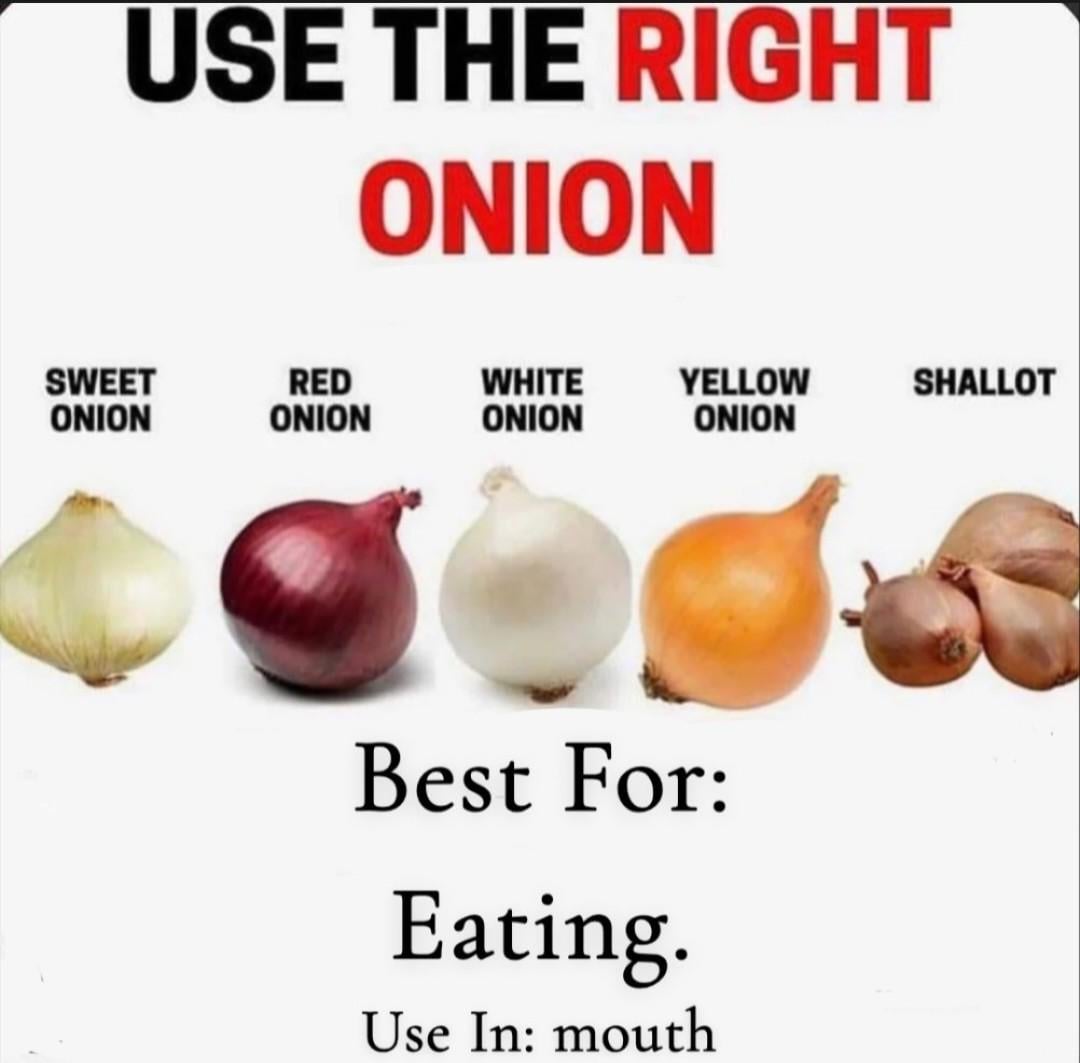 The ONLY right way to eat an onion.by DAZdaHOFF 6 Comments Lukasmckain 1 month ago This one is sooooo much better. Due_Patience960 1 month ago Repost! Valuable-Ruin-2652 1 month ago 👏🏽 bendroid801 1 month ago Facts GrundusMcFlurgus 1 month ago I’ve been doing it all wrong! _boringoldfart 1 month ago I will never get over the fact that a PURPLE onion is called a red onion
