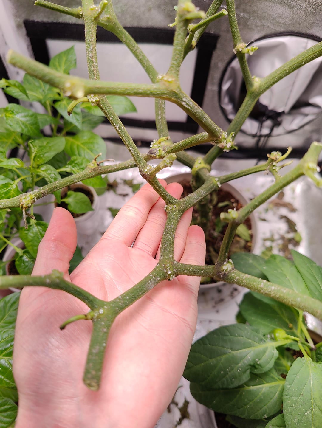 Yes i have a fan in my grow tent. I even leave the tent open a little. But i wasnt paying close attention to humidity for a while. It must have been too crowded with leaves too. Habanero pepper plant in coco coir. 2×2 grow tent, 50 watt grow light. Maxigro