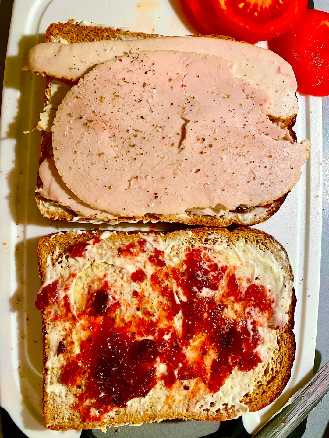 cranberry sauce mayo, smoked turkey and smoked chicken, Jarslberg cheese, honey roast ham crisps, tomatoes, coleslawby simmyawardwinner Dining and Cooking