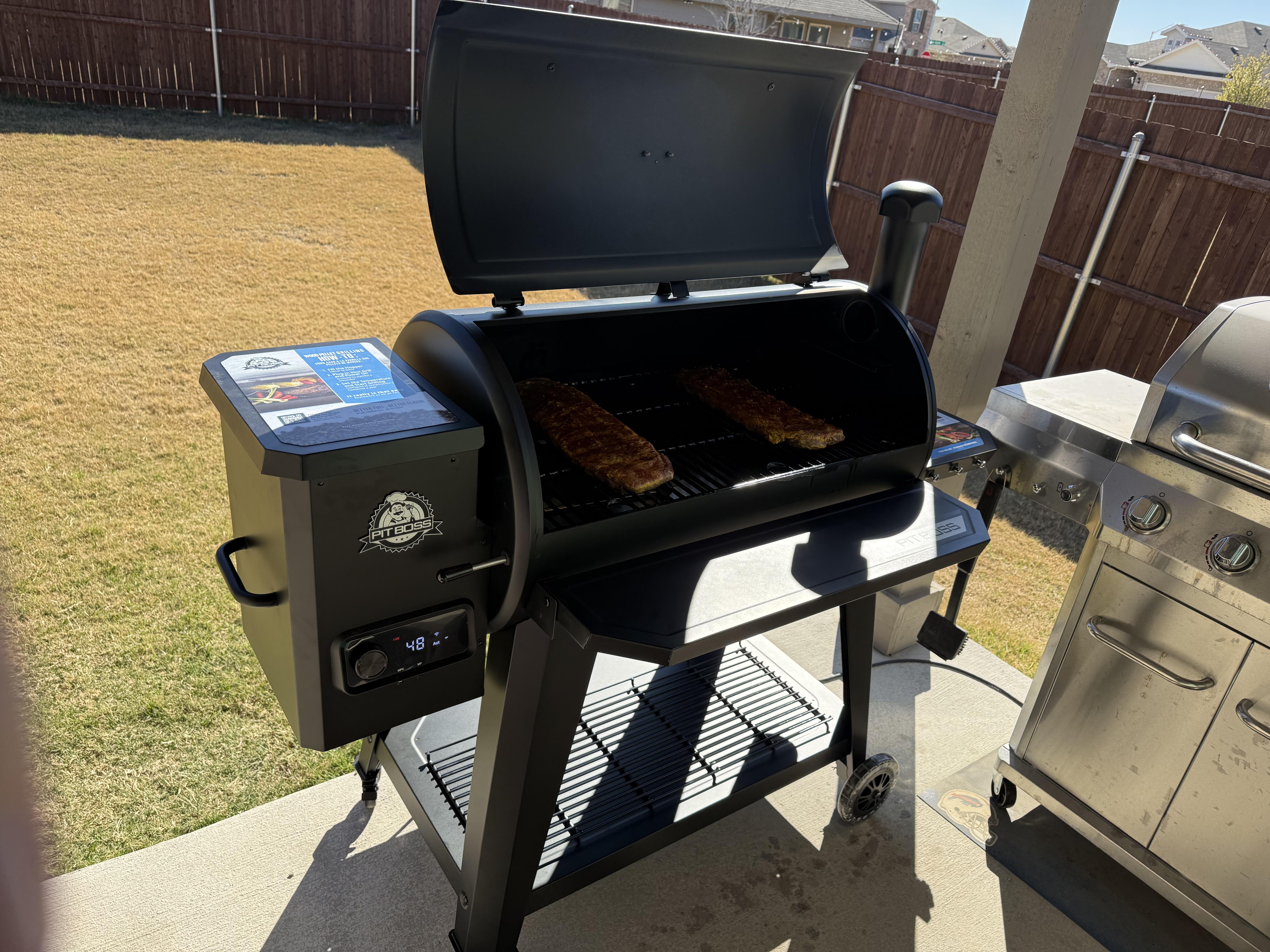 Got a new pit boss 1150DX from Lowe’s. I had an old one but it unfortunately bit the dust. Between my in laws, parents and my wife they all surprised me for Christmas and my birthday since I was pretty bummed about the old one dying. I got this delivered yesterday, did a burn off and smoked ribs today and had them over to celebrate. It’s a lot bigger than the old one but I feel like I’m back to being a kid in the candy shop. Happy smoking!