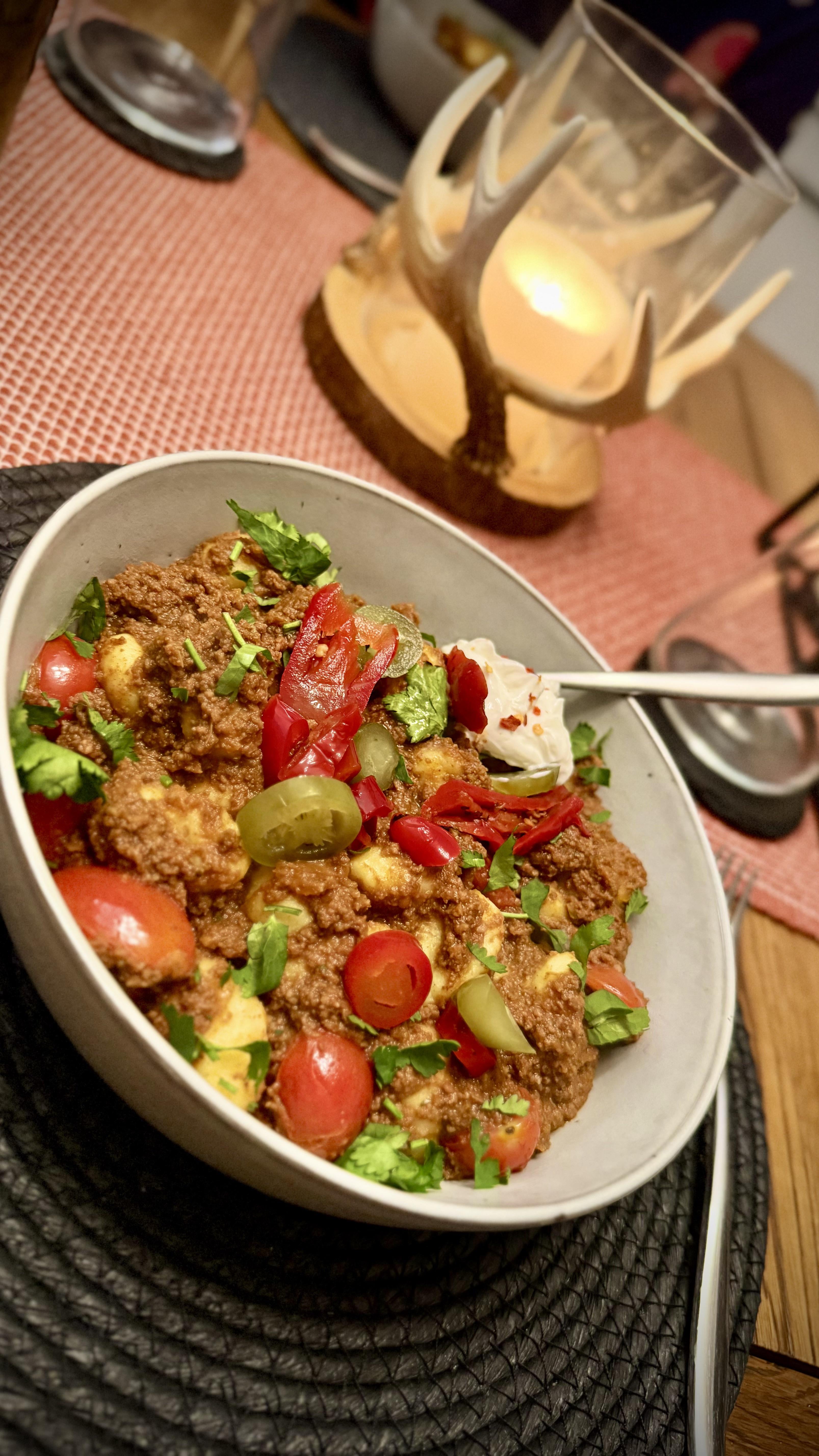 IT WAS AWESOME. Mixed with gnocchi and tomatoes and topped with jalepenos and a little greek yoghurt by TheBristolBulk Dining and Cooking