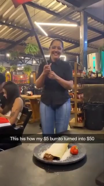 Just gonna point out that this looks to be a crepe not a burrito, so I think we can safely say whoever made the caption isn’t the one who actually filmed this and the price is BS. That said, it’s still extremely stupid regardless of the price.