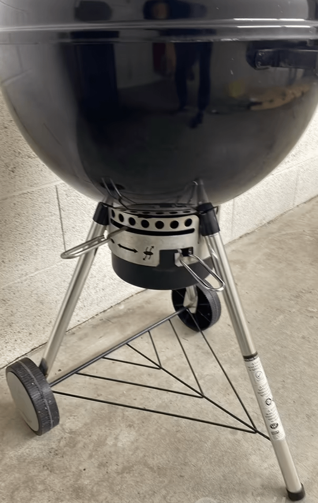 Buongiorno, ci dovrebbe essere un gancio all’interno del coperchio vicino al vento. Questo è quello che si usa per appenderlo alla griglia.