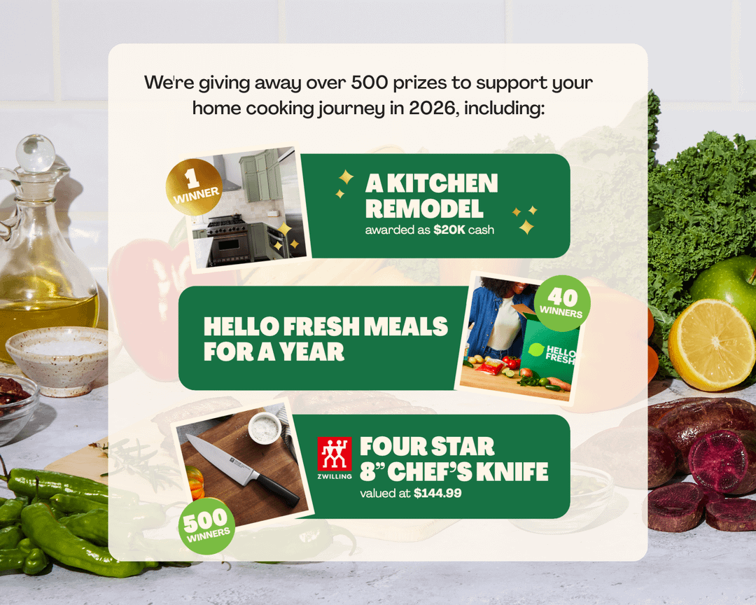 Hey hey, HelloFresh sub! I wanted to wish you all a Happy New Year and share something fun we’re doing over at HF HQ! To kick off 2026, we’re excited to introduce our Homemade Hero Sweepstakes for our US-Based fellow home cooks.