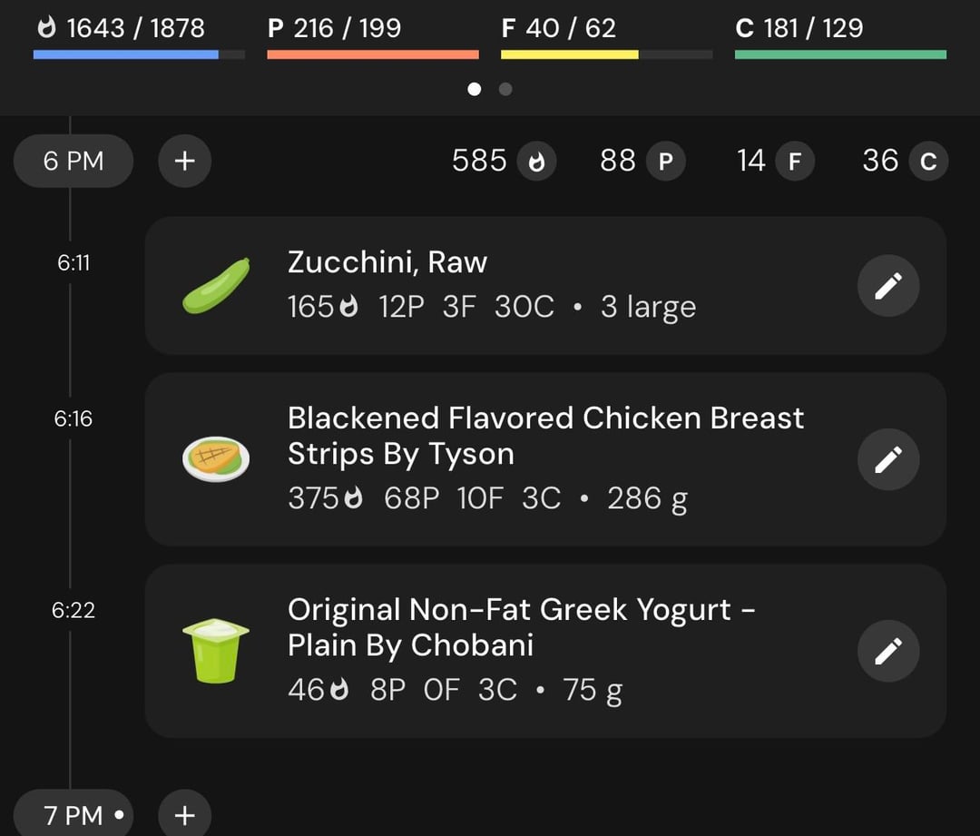 Simple and a ton of volume and protein. Giant zucchini, ~280g of Tyson blackened chicken strips, and 75g of Non fat Greek yogurt with mango habanero hot sauce and ranch seasoning to make a spicy ranch. 585 cal. and 88 g of proteinby juandonly01 Dining and Cooking