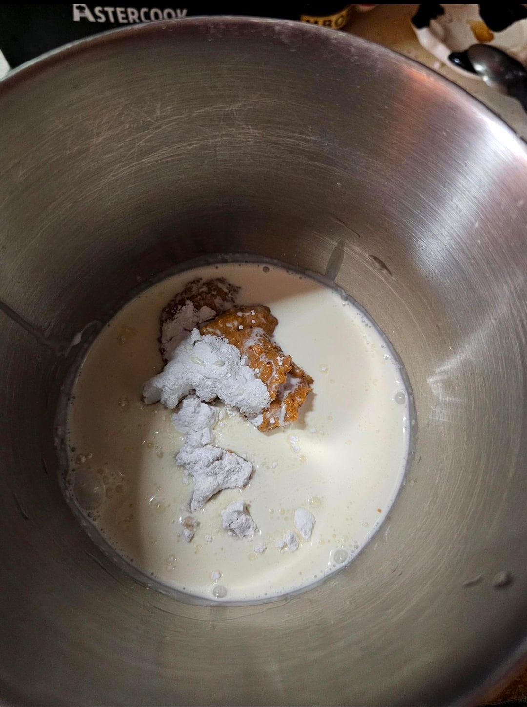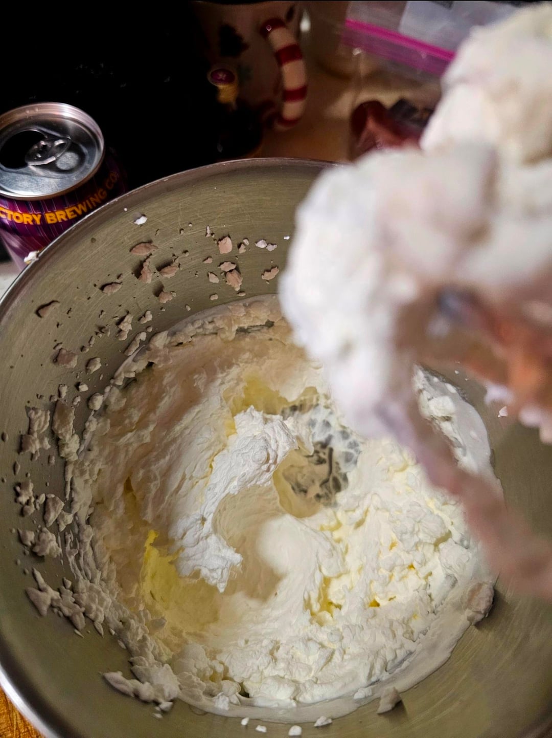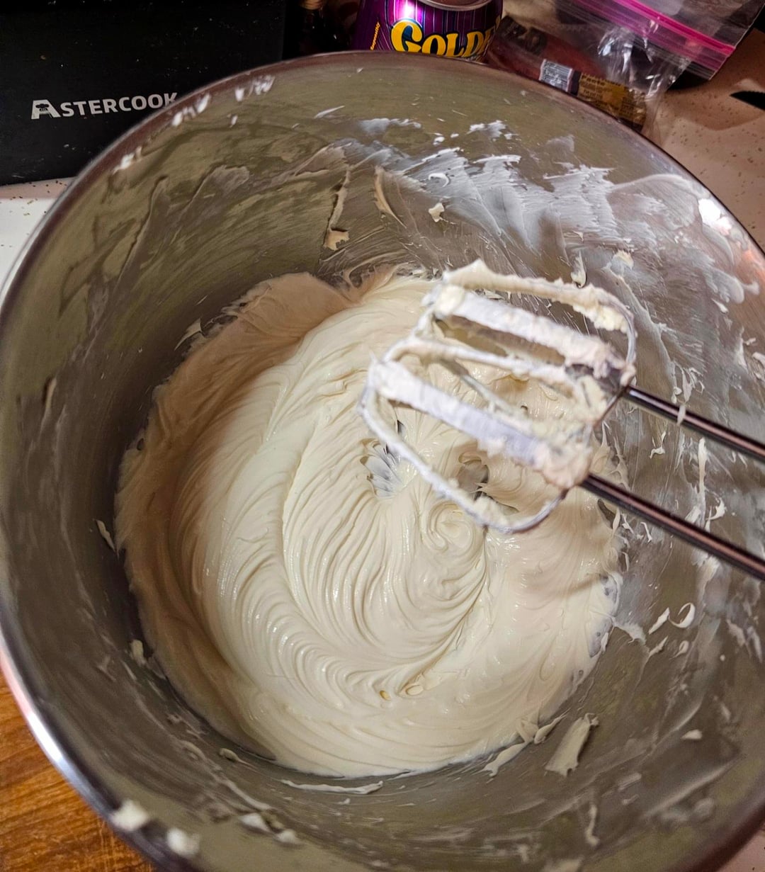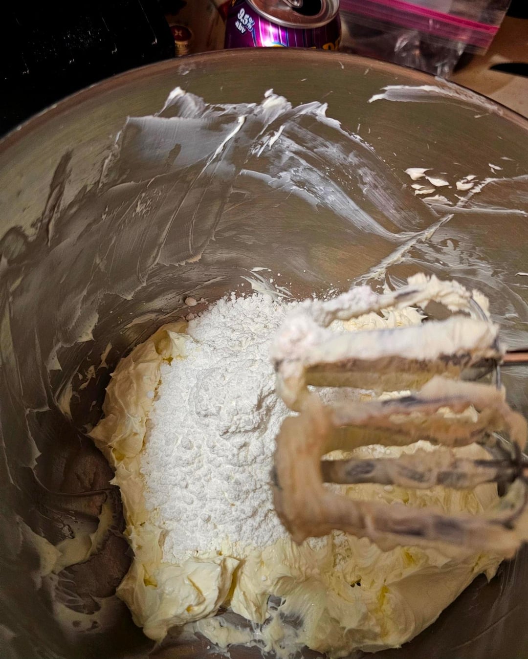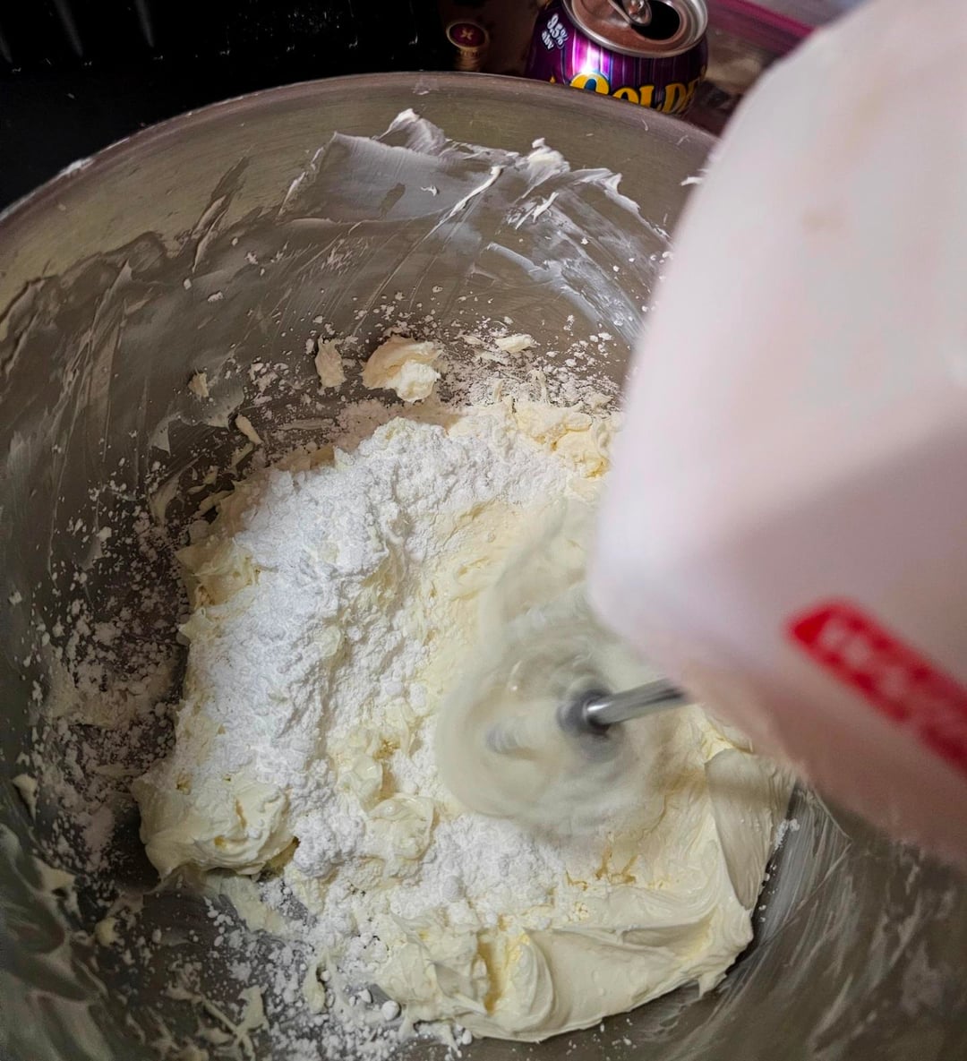 Whip in 1/2 cup of powdered sugar until it's smooth again.