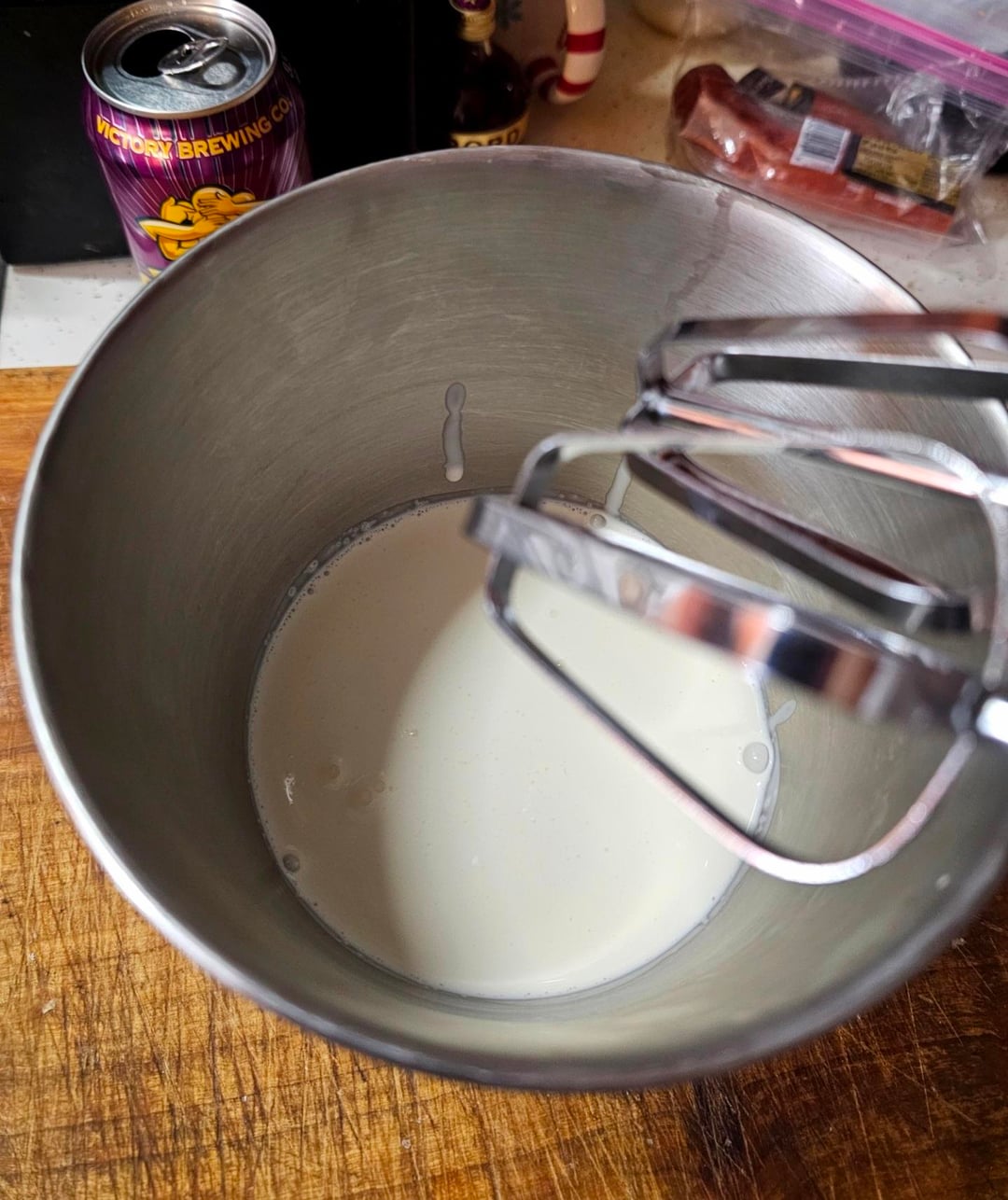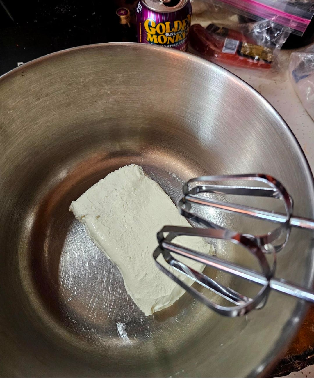 Whip 8oz of cream cheese until it stops getting stuck between the beaters.