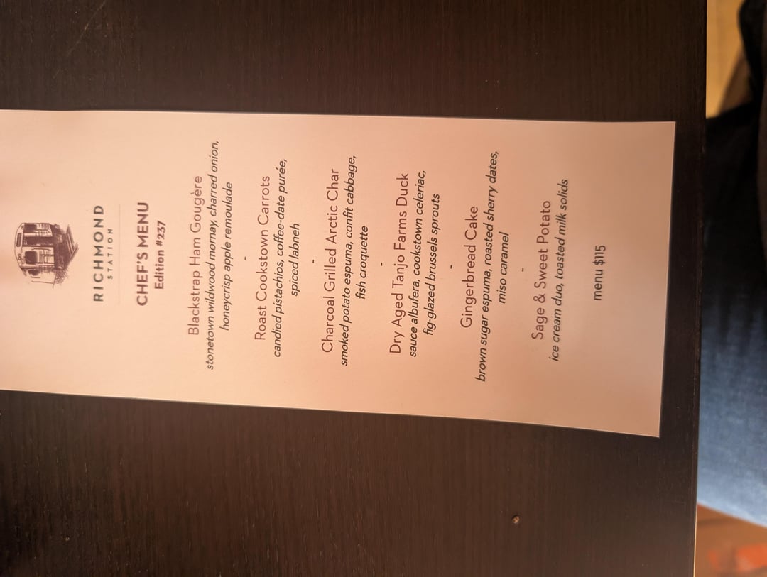 We had an excellent family holiday meal at Richmond Station last night. Everything was great and for the price it probably can't be beat in Toronto.Highlights for me where the duck and artic char.by cernegiant Dining and Cooking