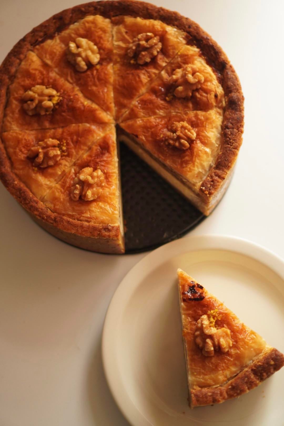 This looks insane! filo + cheesecake + honey/nuts is such a good combo. Baklava-cheesecake hybrids are dangerous. Would absolutely destroy a slice of this.
