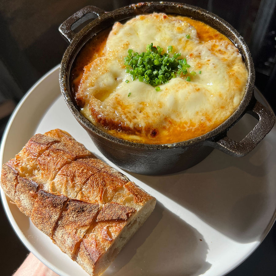 French onion soup at Darling Jack’s / Photograph by Neal Santos