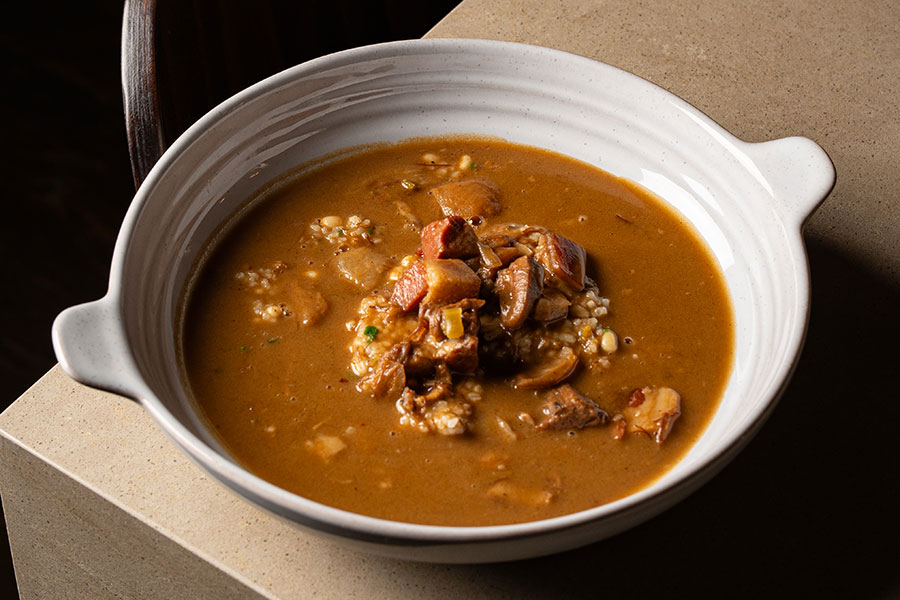 Whether you consider gumbo to be a soup, stew, or something in-between, chef Randy Rucker’s version of the dish has everything you could want or need on a cold day. Available on Little Water’s lunch menu, the gumbo is made with a pork-bouillon base and chocolate roux that provides a glorious, thick texture (and just a touch of sweetness), braised pig’s head that’s cooked so tenderly it almost melts in the mouth, and a mix of field peas and Carolina gold rice. It’s topped with pork crackling for a slightly salty finish and served with a dropper of hot sauce that’s made in-house with fermented peppers. 261 South 20th Street.