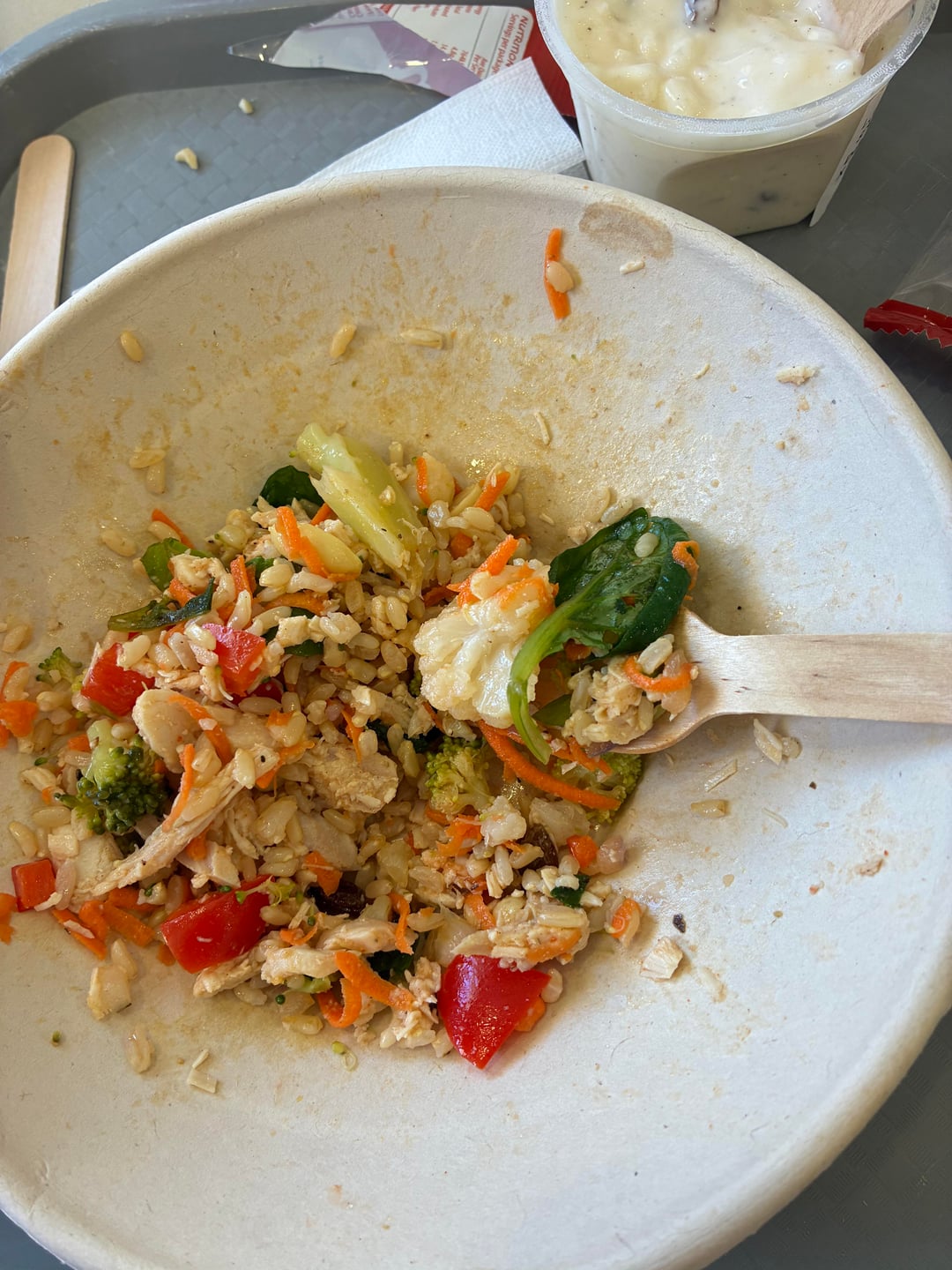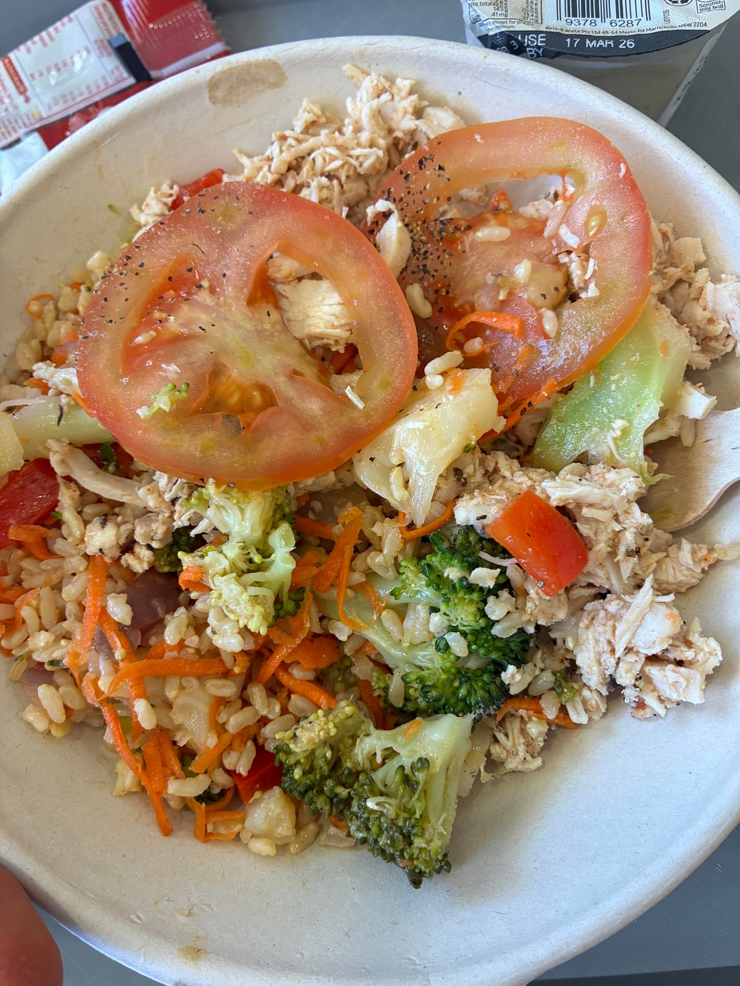 Honestly no idea what to estimate this as, cafeteria rice salad, didn’t have the sauce but the salad already had a dressing on it. I’d say around a cup-1.5 cups of riceby Lemonadeo1 Dining and Cooking