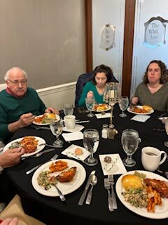After the blessing, 47 members enjoyed a delicious meal featuring penne with meat sauce, chicken parmigiana, Mediterranean salad and fresh rolls, topped off with cannoli for dessert.