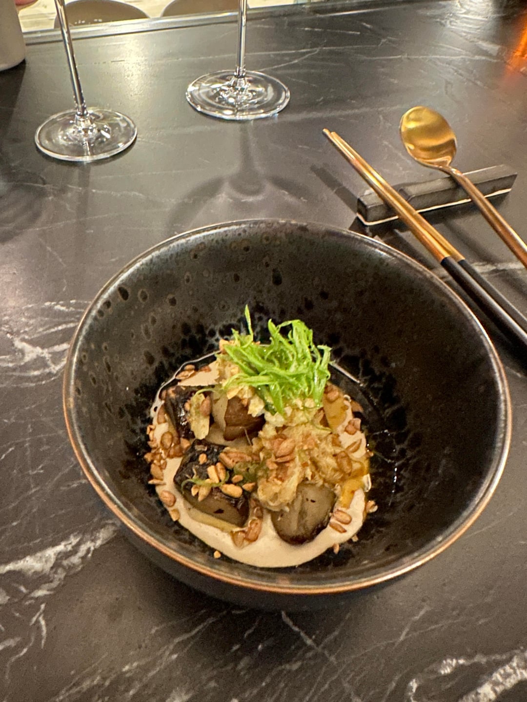 This restaurant opened about a year and a half ago and is absolutely fantastic. This is my husband and I’s second time dining, it’s BYOB, and the service is lovely. We sat at the chefs counter both times which is fun to watch everything being prepared. I’d say go while their prices are still affordable – $135pp.