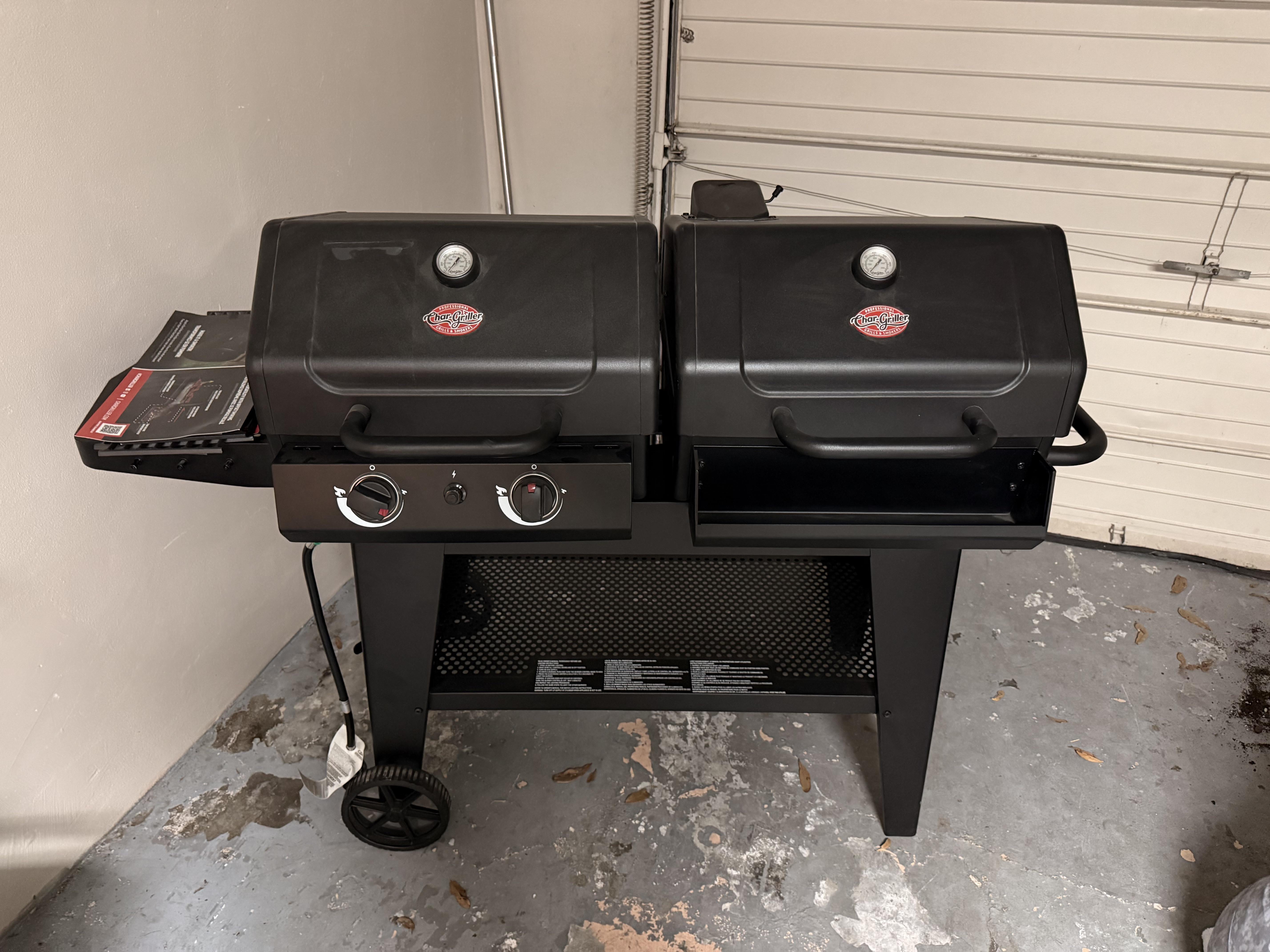 I got the dual-fuel Char-Griller for quick sears of steaks, and the cooking of hamburgers/hotdogs on pool days. The charcoal side is gonna be where the smoke magic happens as soon as my side-fire box arrives on Tuesday.