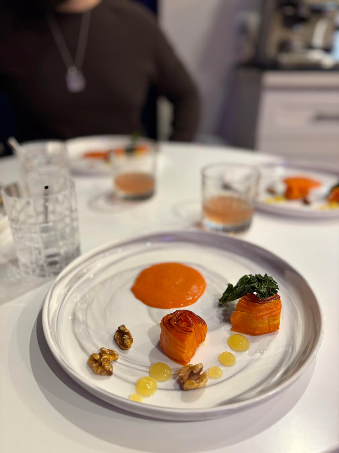 4th: Carrot Rosette with Citrus Gelée & Candied Walnuts, with a carrot sauce reduction