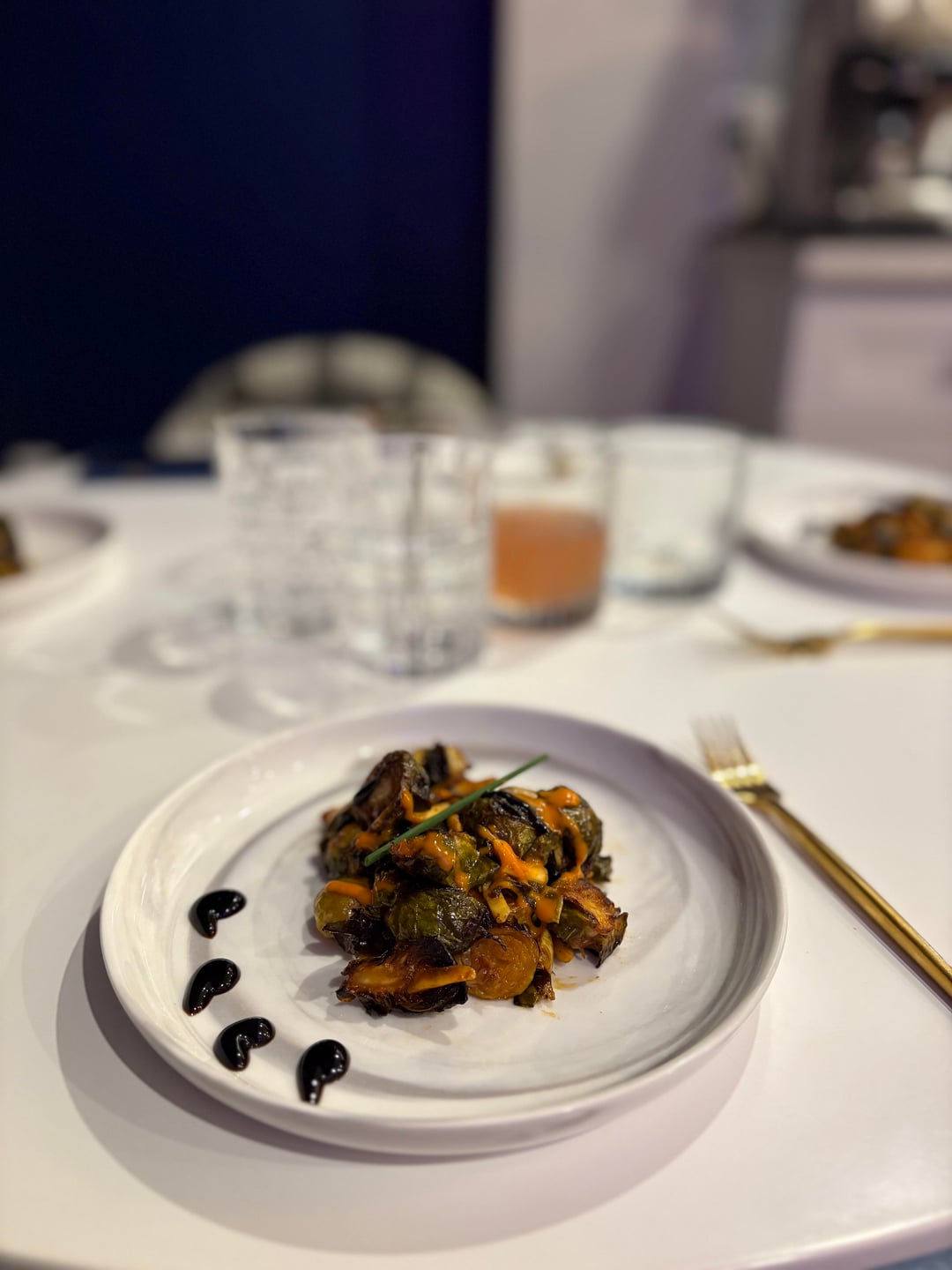 3rd: Baked Brussel sprouts with a maple glaze, drizzled with a homemade buffalo style hot sauce, and balsamic reduction.