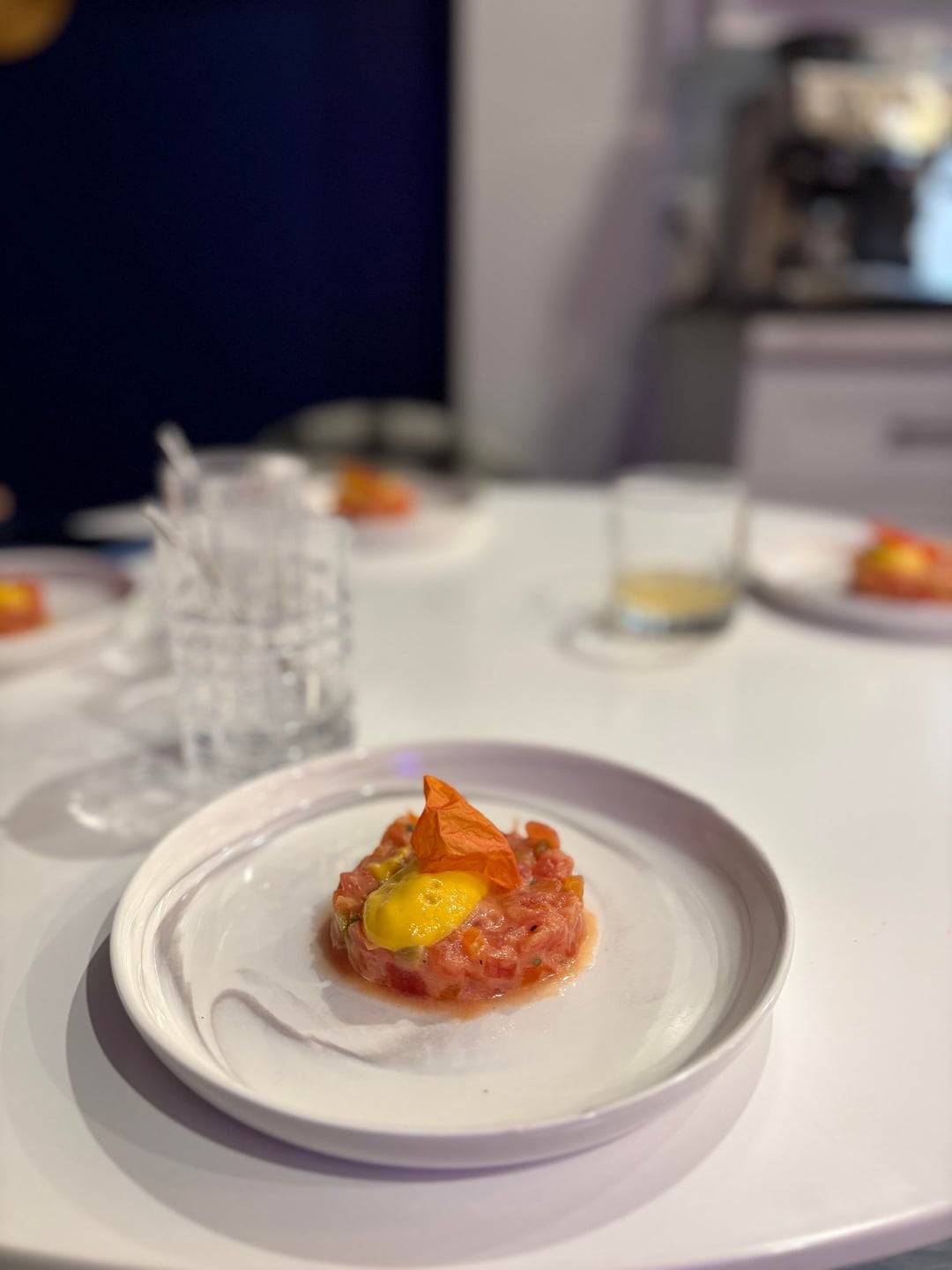 2nd: Tomato and pepper tartar with yellow pepper puree, and dehydrated tomato skin topping.
