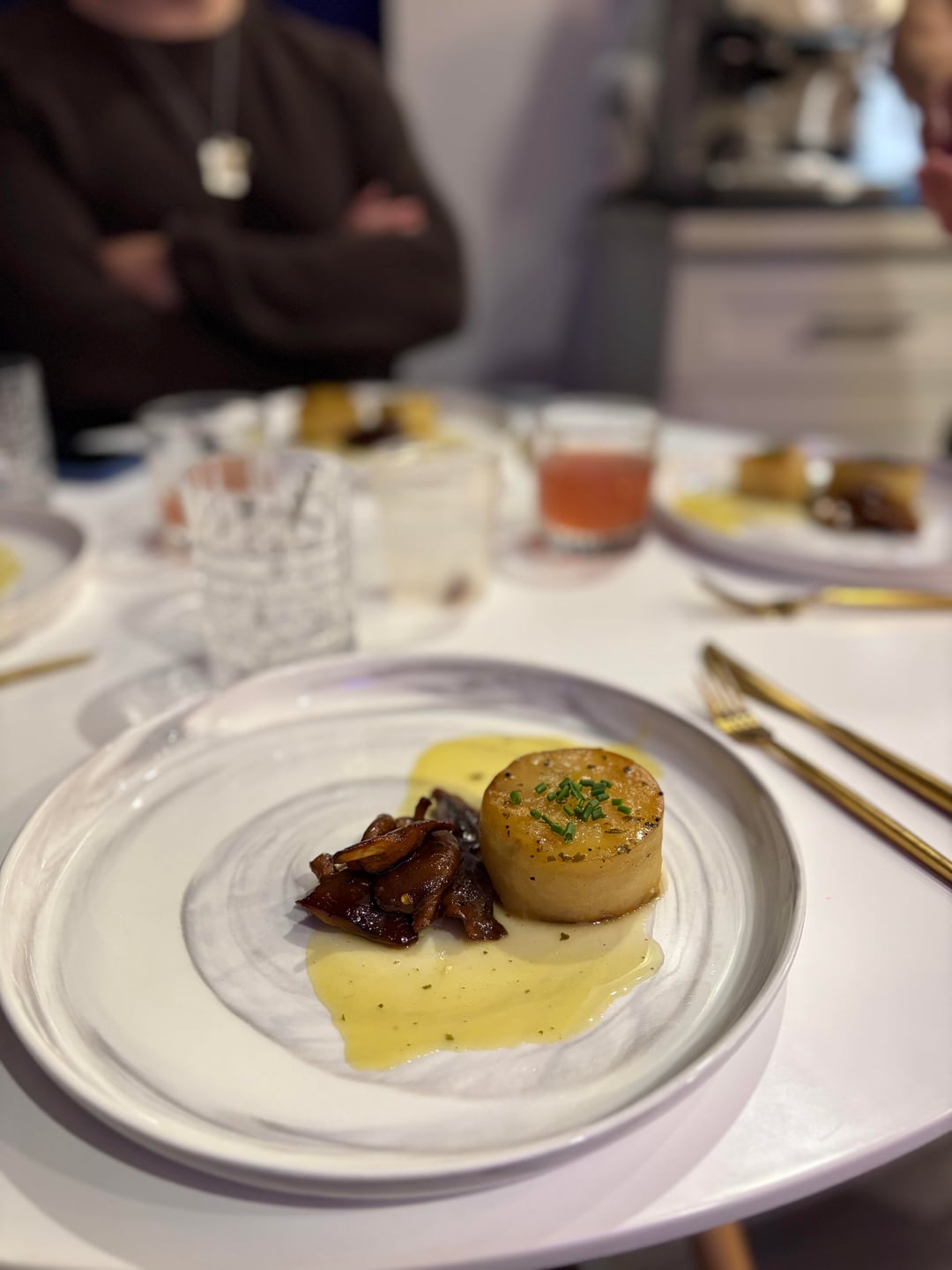 5th: Fondant potatoes, with marinated and fried mushrooms.