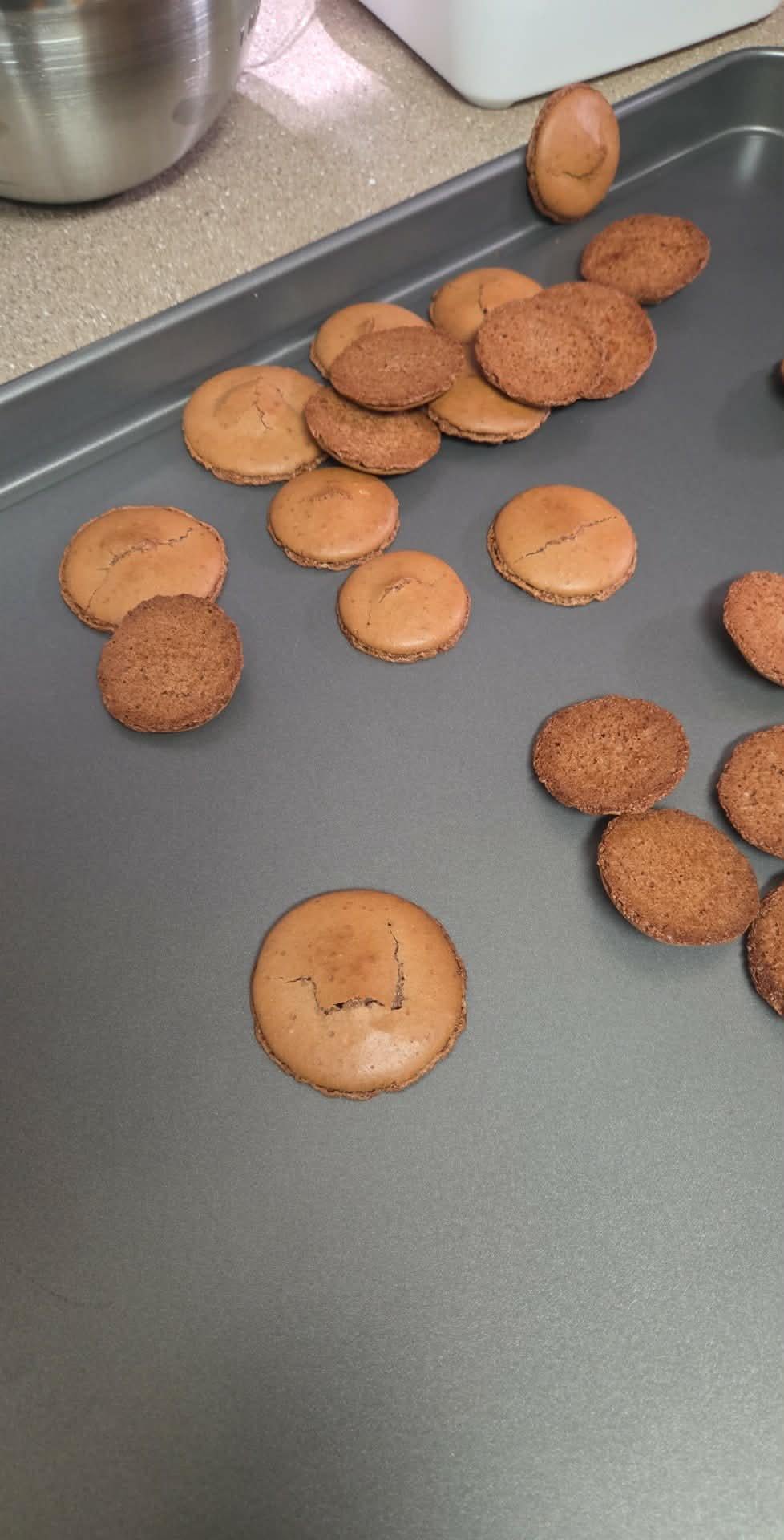 Cracked, thin, and crunchy. My only thought is potentially bad macronage or maybe they were left to set too long before baking. Baked for 11 minutes at 325°F