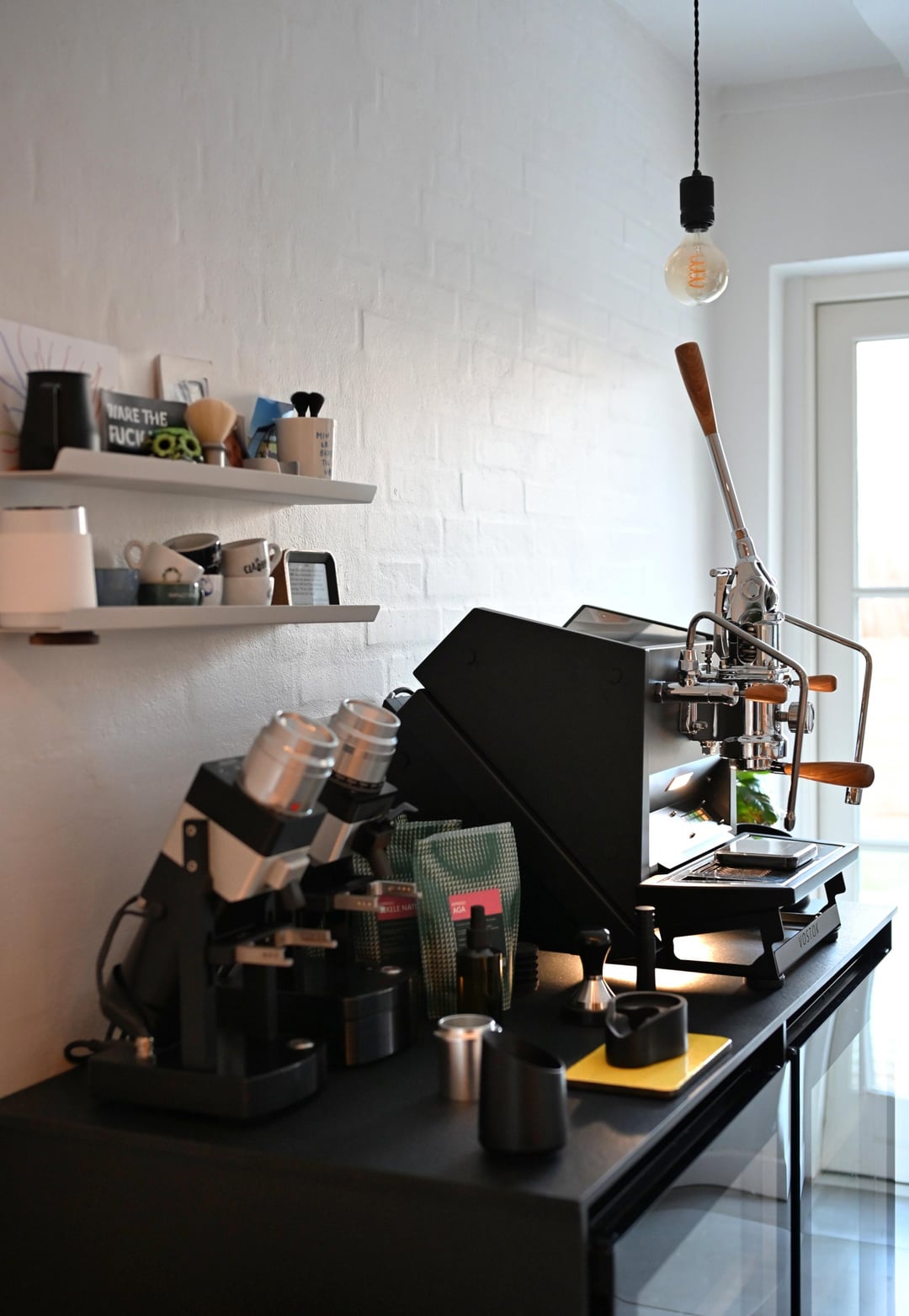 Very nice set up. Love the twin Kafatek grinders too. Lever machines are hard to beat.
