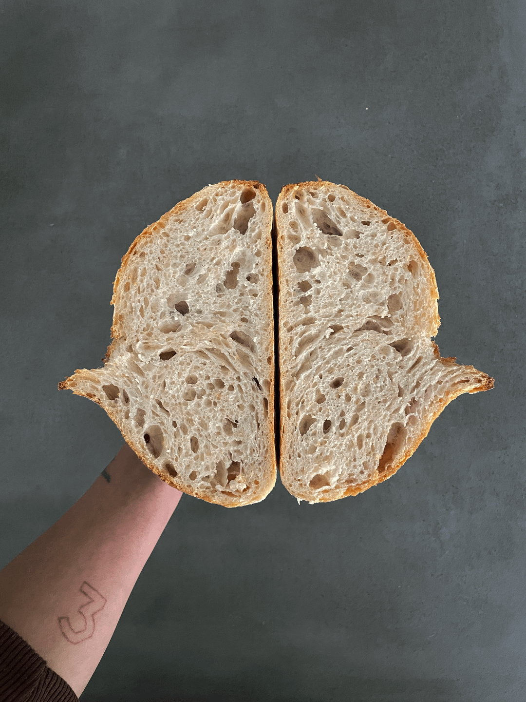 However, your dough has nice strength and I would be chasing longer fermentation to maybe open up that crumb nicely and really see how much your starter can push open. That on it’s own might give you a bit more spring. If you’re like me and you like the way your dough handles now (so you dont want to cut bulk later), just let your loaf proof a bit in the banneton (in your warm place) before cold retard. I bulk to about 50% rise, shape, and let the rest go in the basket before fridge.