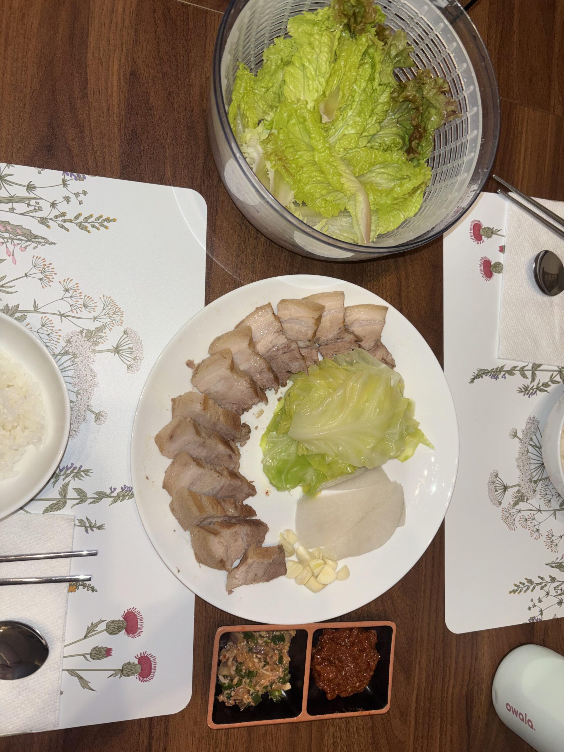 Super filling Korean boiled pork belly with cabbage wrap and ssamjang. Ate about half of that pork. Honestly the rice was not needed.by tteobokki_gal Dining and Cooking