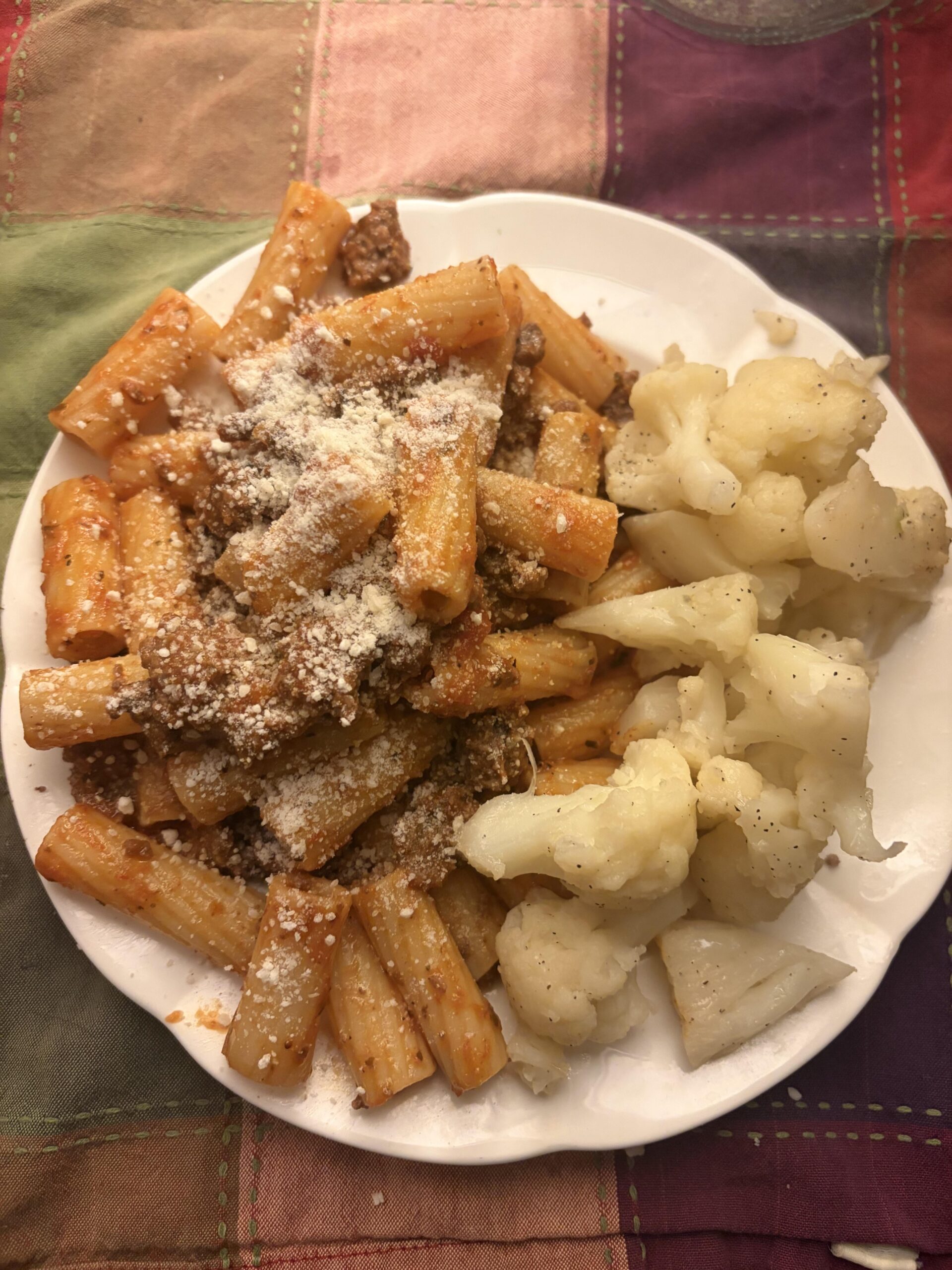 this plate of pasta with meat sauce & cauliflower for around 600 cals! i know that still could be a lot, but if you eat a small breakfast & lunch, you can totally eat a lot for dinner!