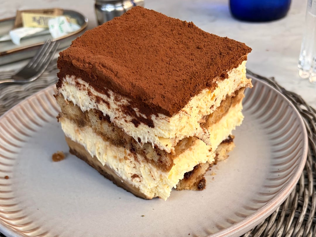(seen here with heirloom tomato, a harissa hollandaise, two poached eggs, on focaccia). The pork was a generous cut, falling-apart-in-your-mouth tender, very delicious and decidedly the star of the dish. I finished with their likewise richly flavorful banana tiramisu. Highly recommended if you like brunch at all.