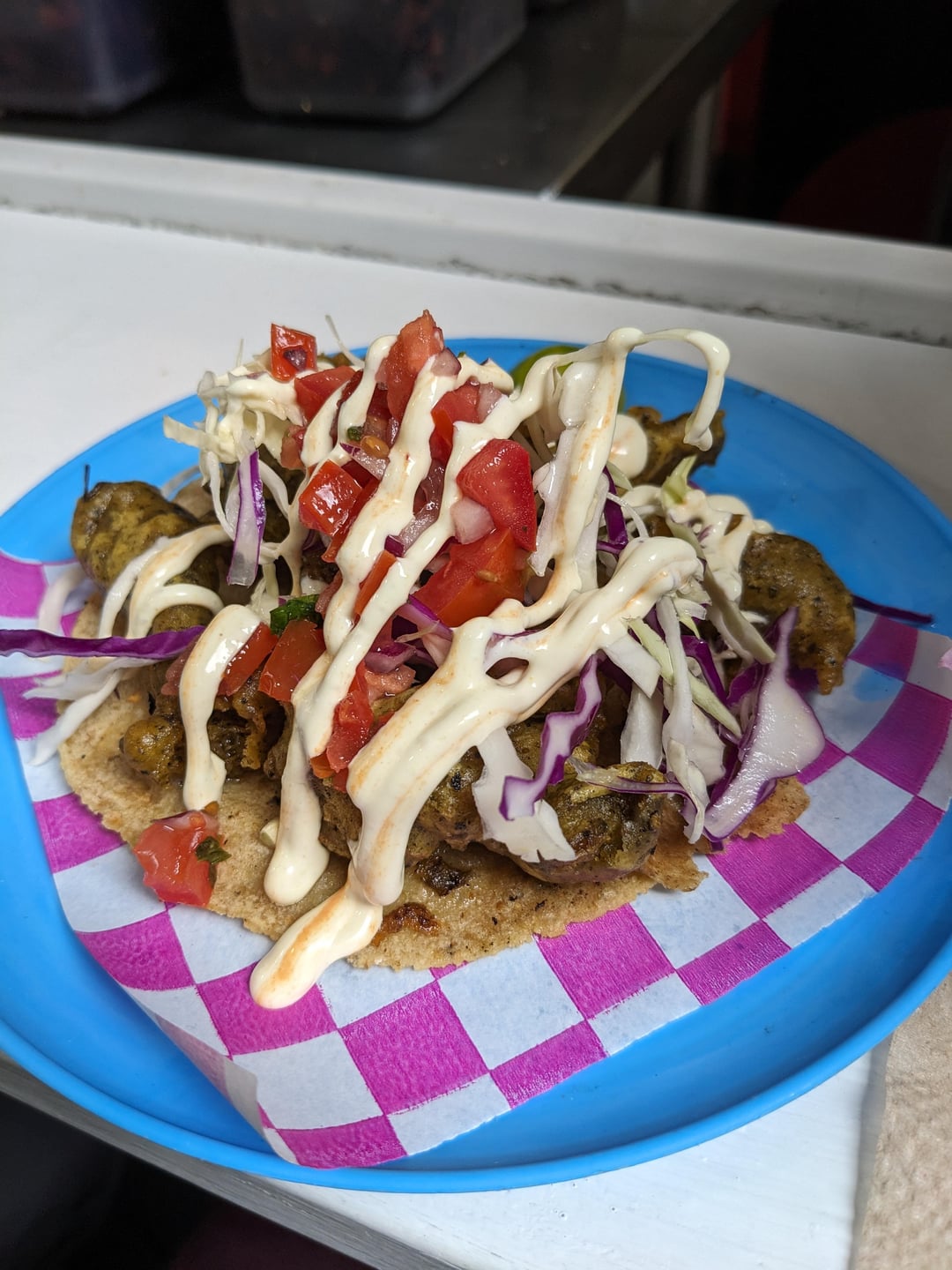 Fried and breaded oyster mushrooms. I ate 3! This was from a fully vegan food stand called Paxtil in a neighbourhood called Condesa.by twodegrees_ 4 Comments Character-Inside-476 1 week ago 45 dollar taco and a 10 dollar water is a bit steep Matthews628 1 week ago I’ve been to this stand! The one that used nori as a tortilla wasn’t for me but the other two I tried were delicious! Fuzzy_Welcome8348 1 week ago Looks great! Few_Hedgehog1821 1 week ago CDMX looks like a vegan haven – can’t wait to check it out!