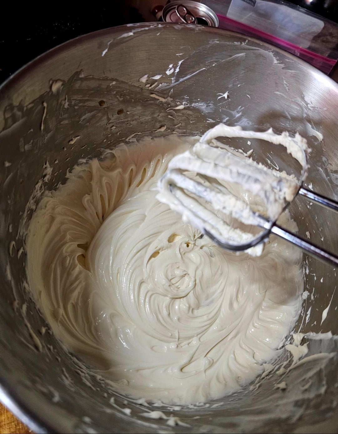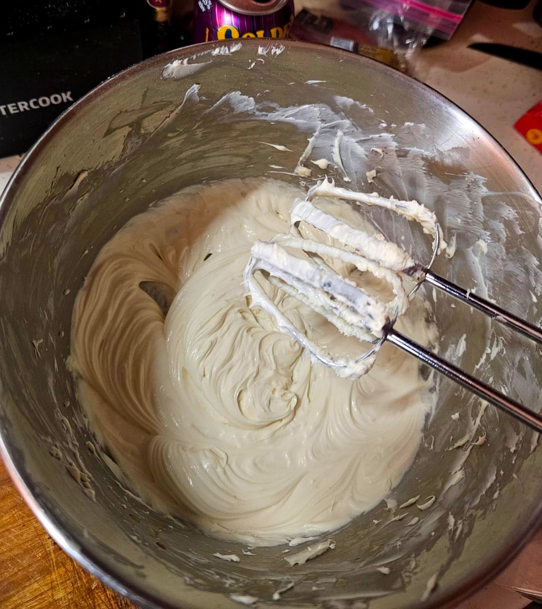 Whip 8oz of cream cheese until it stops getting stuck between the beaters.