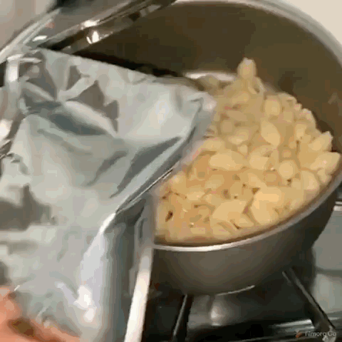This is a great hack, the problem is I am lazy. I typically don’t use a pot lid when making mac and cheese because then I also have to wash a pot lid.