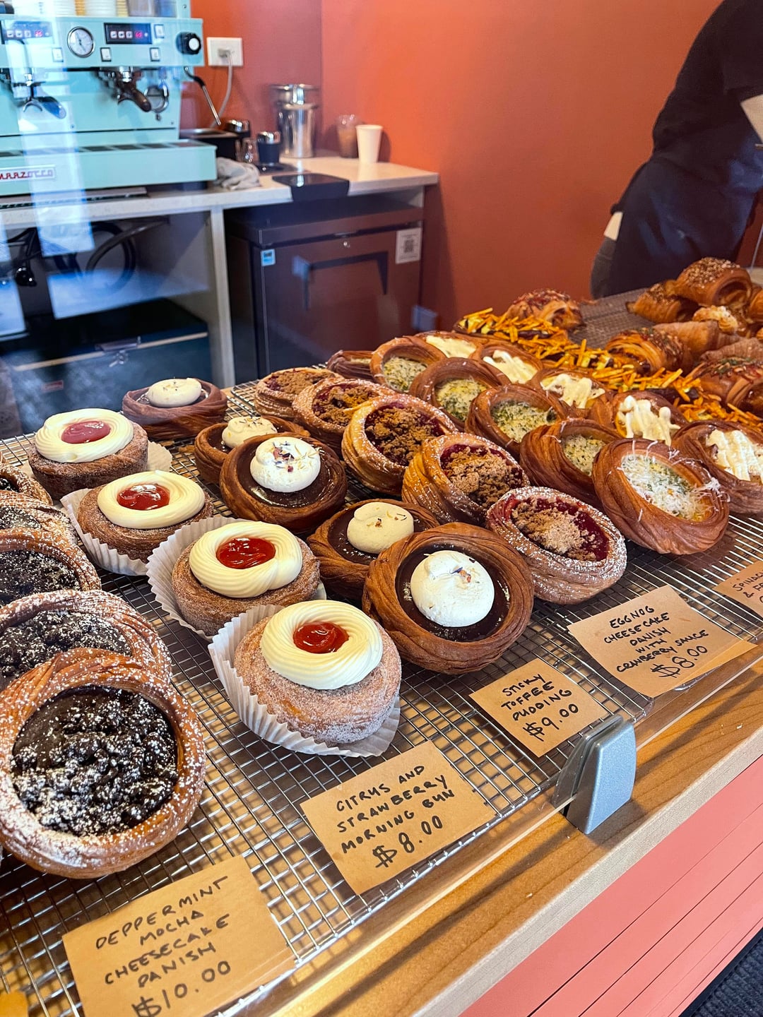 this sunday my fiance and i decided to take advantage of the cold weather and go over to fat peach bakery, and man was it the best decision! we walked right in to a full case of pastries about 20 minutes after they opened. the staff was so friendly and kind, and the pastries were absolutely insane. we tried the sticky toffee pudding, guava custard danish, and the breakfast pastry. each one was sooo flavorful and extremely well balanced. my personal favorite was the sticky toffee pudding, it was not too sweet and had the perfect flavor profile for a cold winter day. i was also especially impressed by the breakfast pastry – the pastry itself was so flaky and buttery, and it had a whole hashbrown inside which i had never seen in a croissant before. 10/10 will be doing this again!