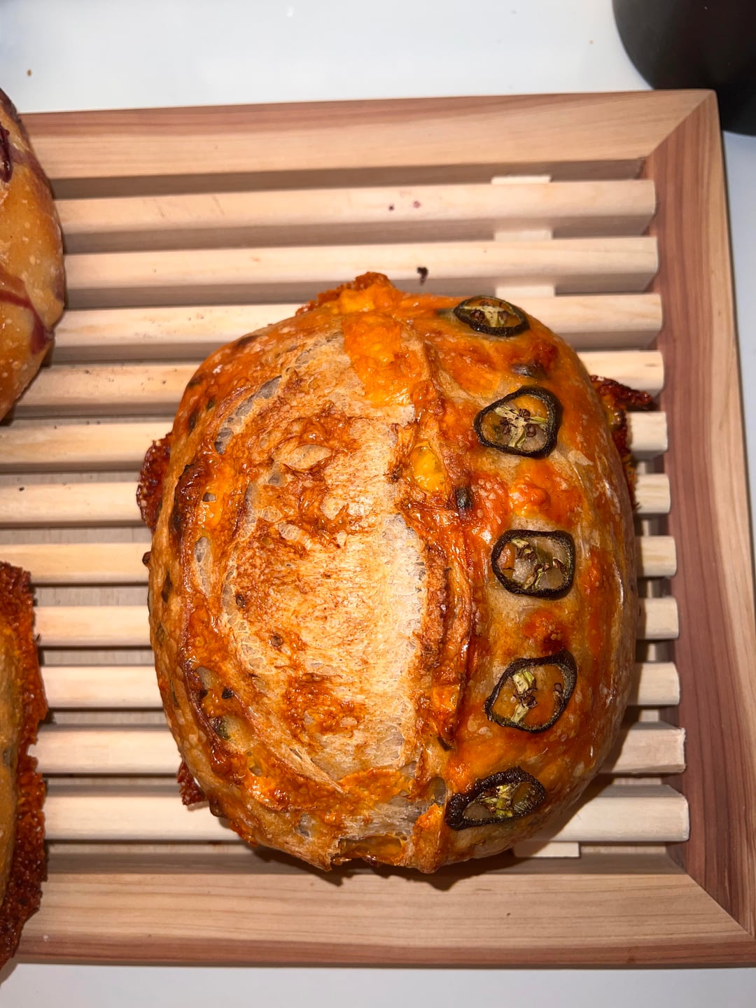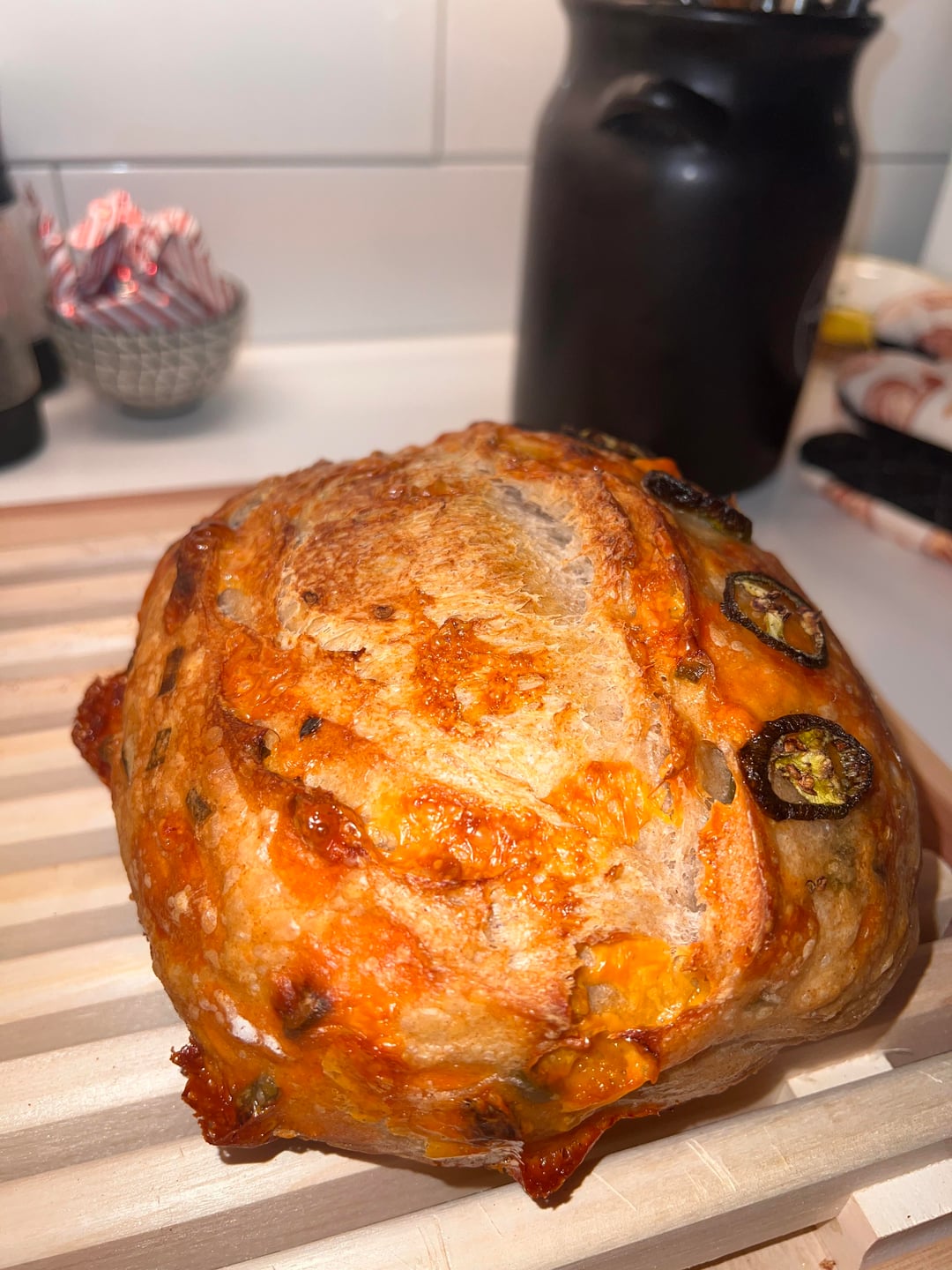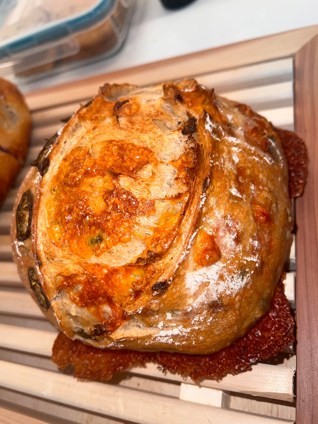 Gheraldine dabbled in a Lemon Blueberry loaf this after noon. As well as a plain Jane and some Cheddar JalapeΓ±o loaves!All the loaves besides the lemon blueberry one were gifted. Sadly no crumb shot π₯² by lent_k 6 Comments applebunny53 2 weeks ago GORGEOUS!!! mylitteprince 2 weeks ago These are mouth-watering. Well done. ohhisnark 2 weeks ago don’t be shy. drop the recipe Fuzzy_Welcome8348 2 weeks ago Looks spectacular! lent_k 2 weeks ago https://preview.redd.it/lbk7u2x60mbg1.jpeg?width=3024&format=pjpg&auto=webp&s=000234267c20b9f6196a074833b7959b3a40282eBrother provided a crumb pic for the one ched jala loaf! (Ty brother) Rdub456 2 weeks ago Beautiful loaves π€€π€€
