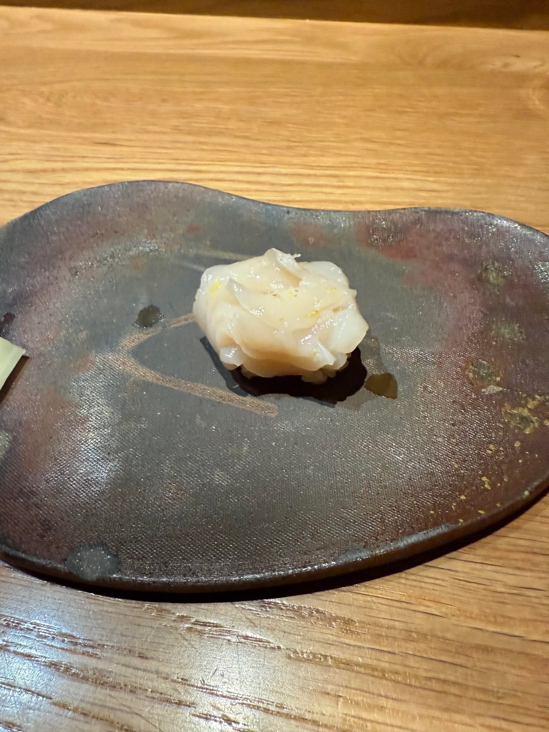 Scallop with yuzu nigiri (pic 5): i liked it and the yuzu added some intrigue 6.5/10