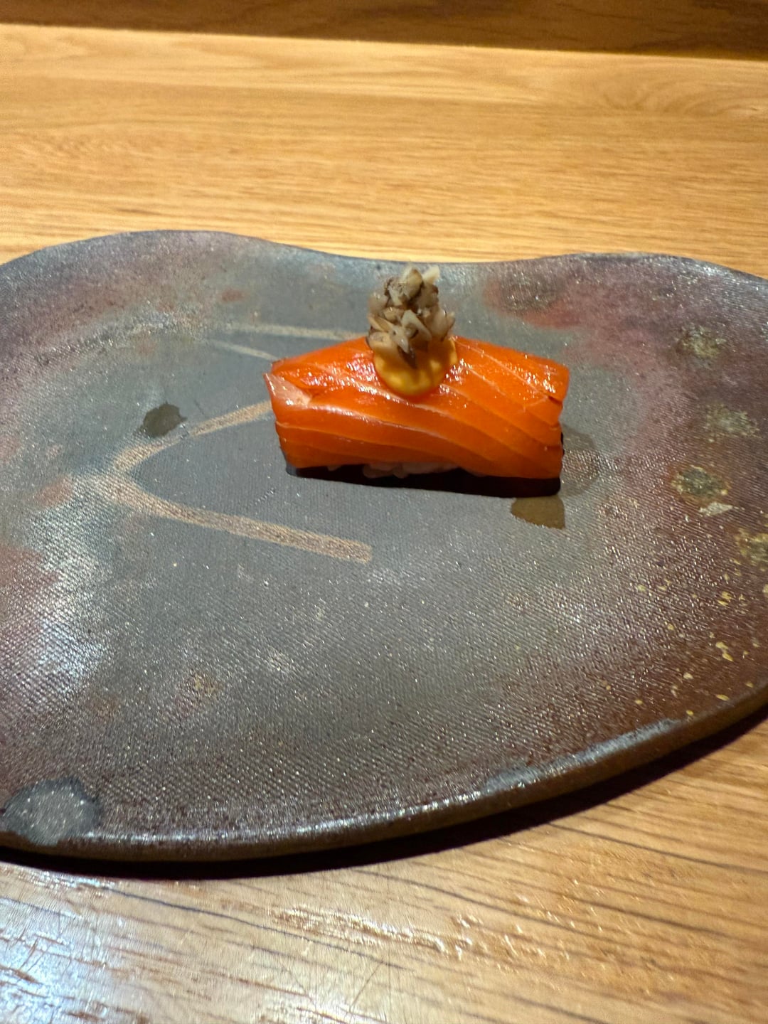 This was very soft and tasty and interesting with the whisky flavors that did not overpower the fish. One of my favorite sushis ive had. 8/10