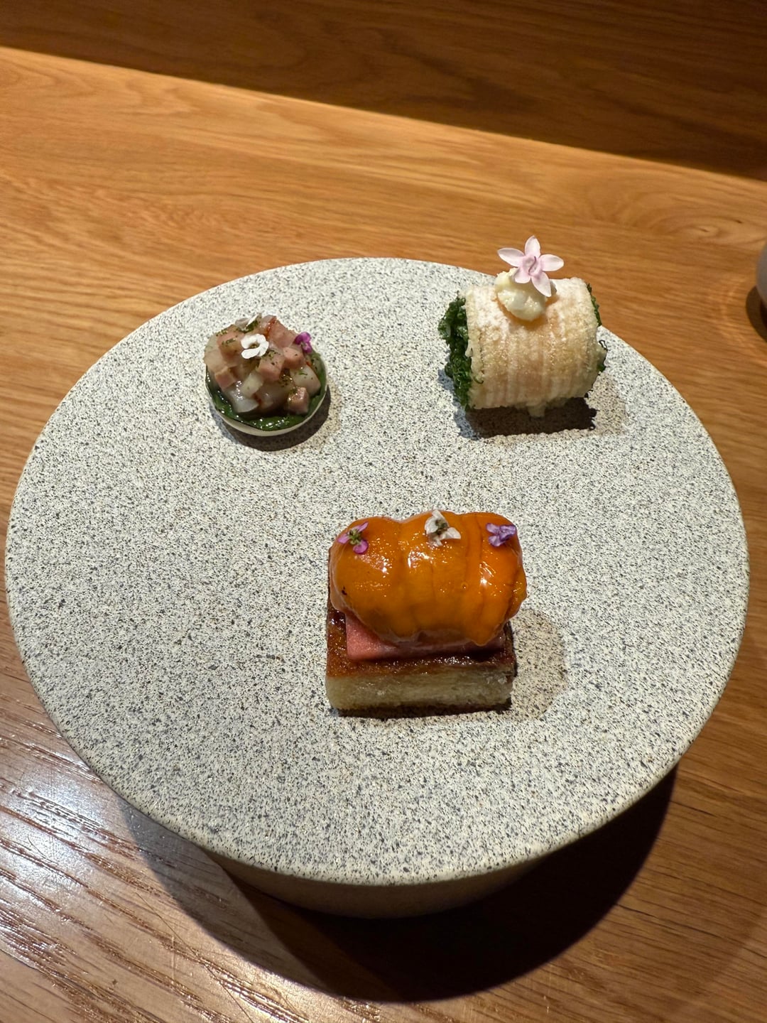 Uni, milkbread, fuji apple, brown butter (pic 1, bottom):