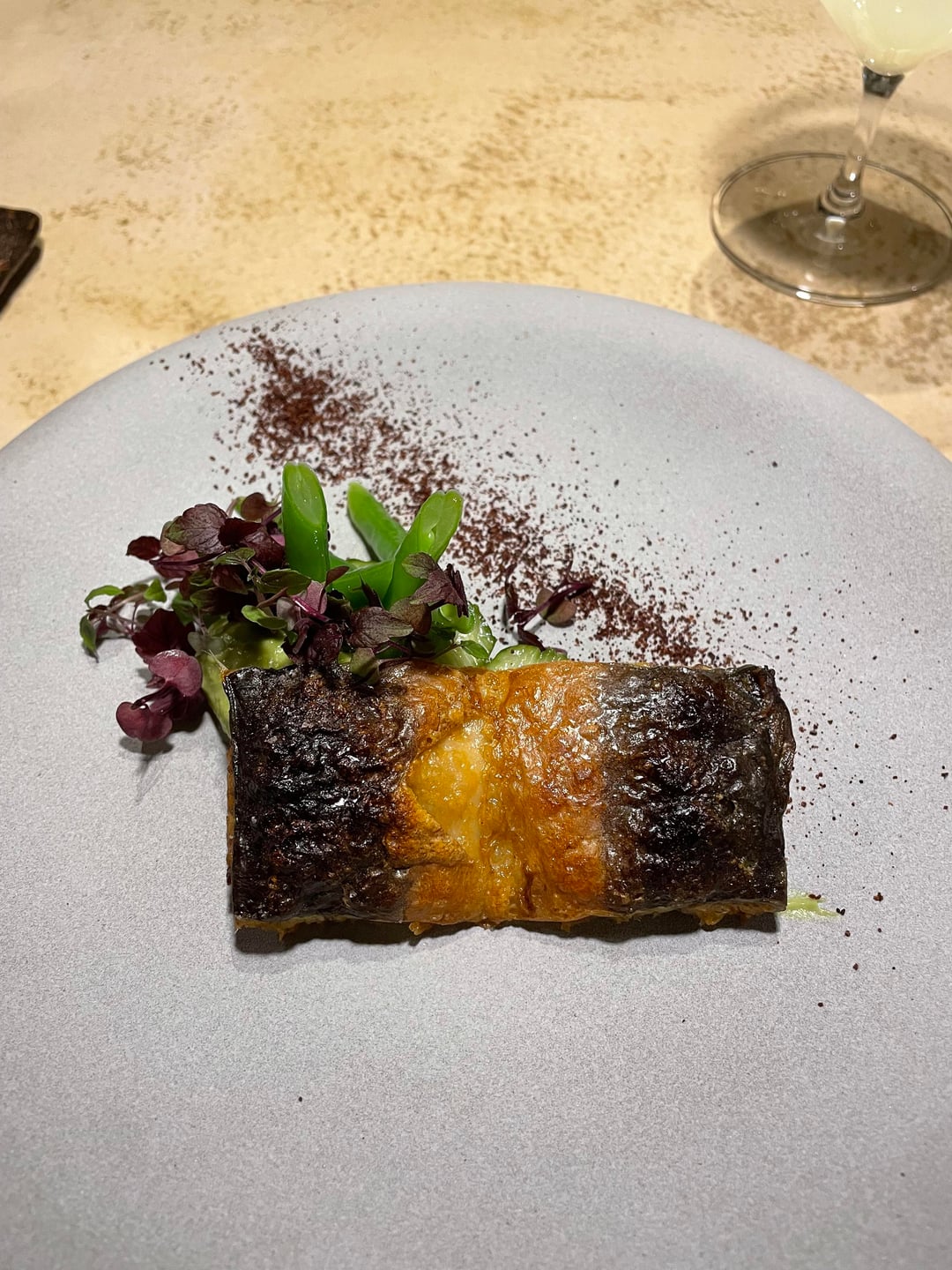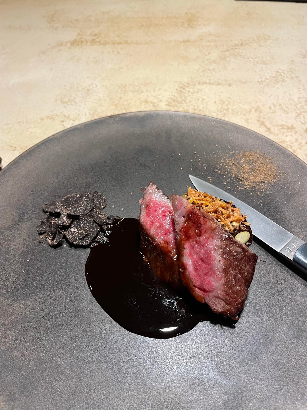 - Kumamoto wagyu with red wine and miso and balsamic vinegar sauce w eggplant and I think sancho powder. I’m basic but was my favorite. The wagyu went well with the eggplant.