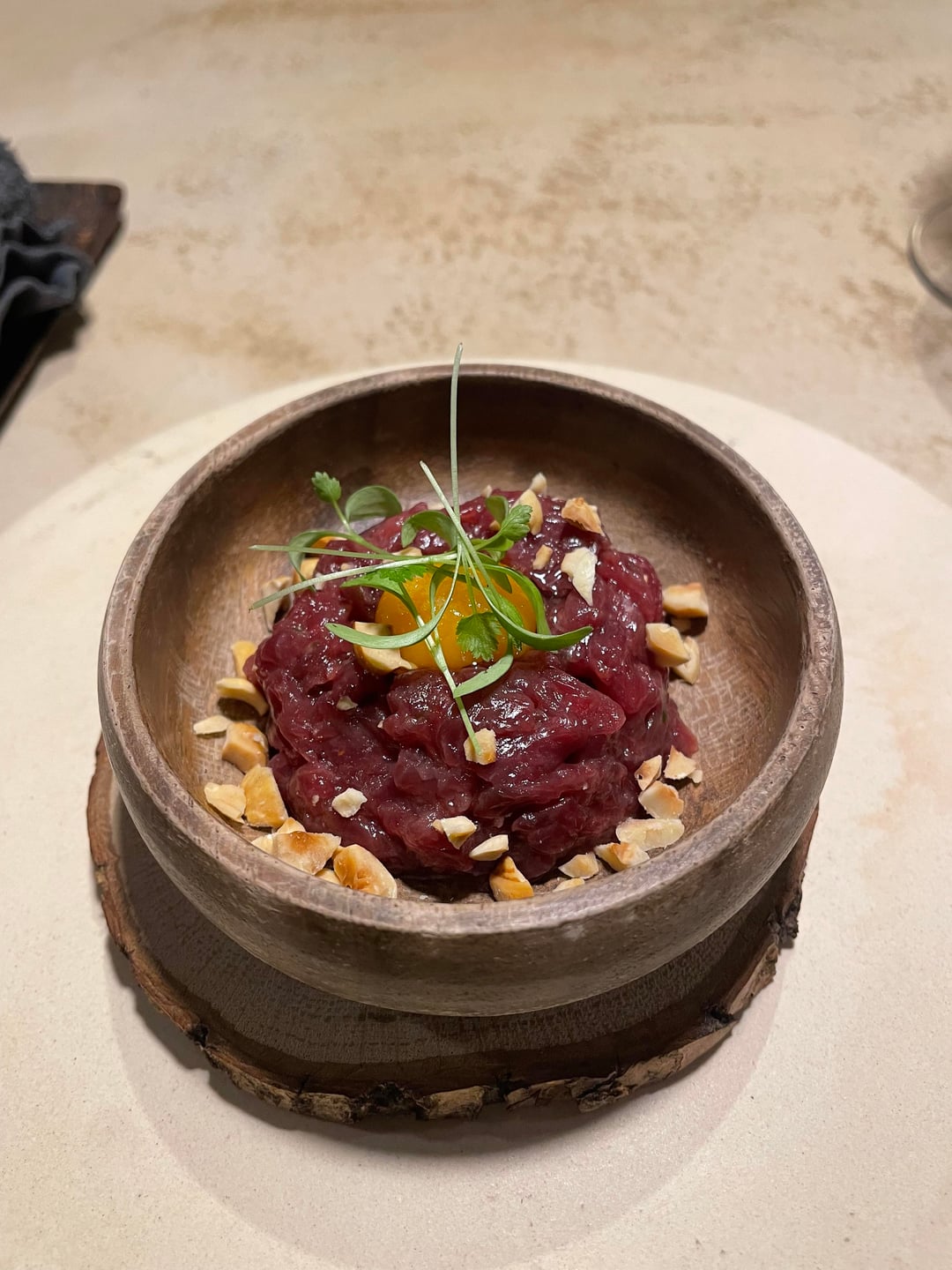 - Kangaroo meat with hazel nut + quail yoke. Honestly, all I could taste was the hazel nuts. The texture was very nice though.
