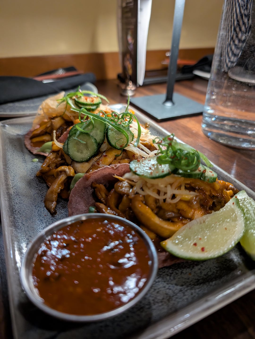 Picture 1: My partner ordered these sexy Bulgogi Mushroom Tacos 🤤
