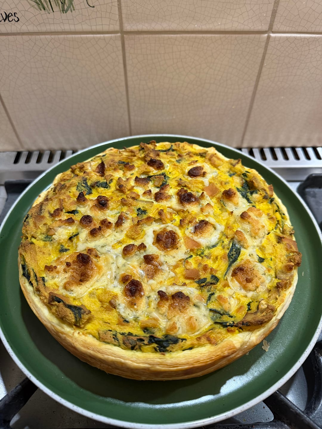 I followed https://lovingitvegan.com/vegan-quiche/ and used JusRoll puff pastry for the base (it’s vegan). I added la vie bacon in the mix and plant-based boursin on top. It was delicious and I totally recommend!